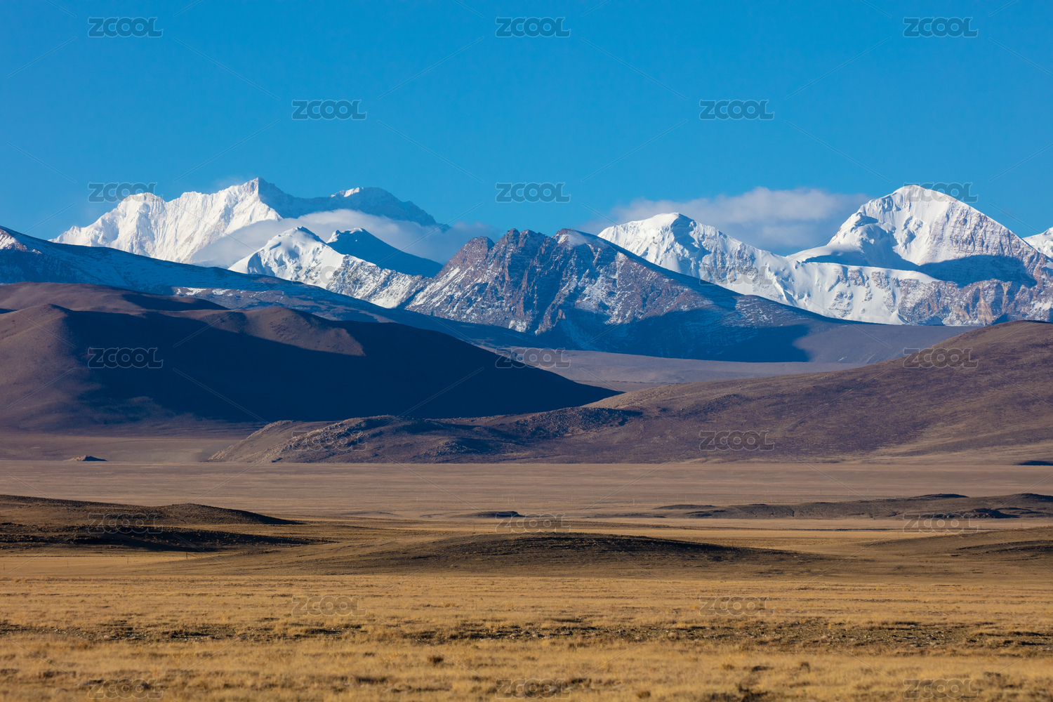中国西藏日喀则岗巴县的高原牧场和雪山