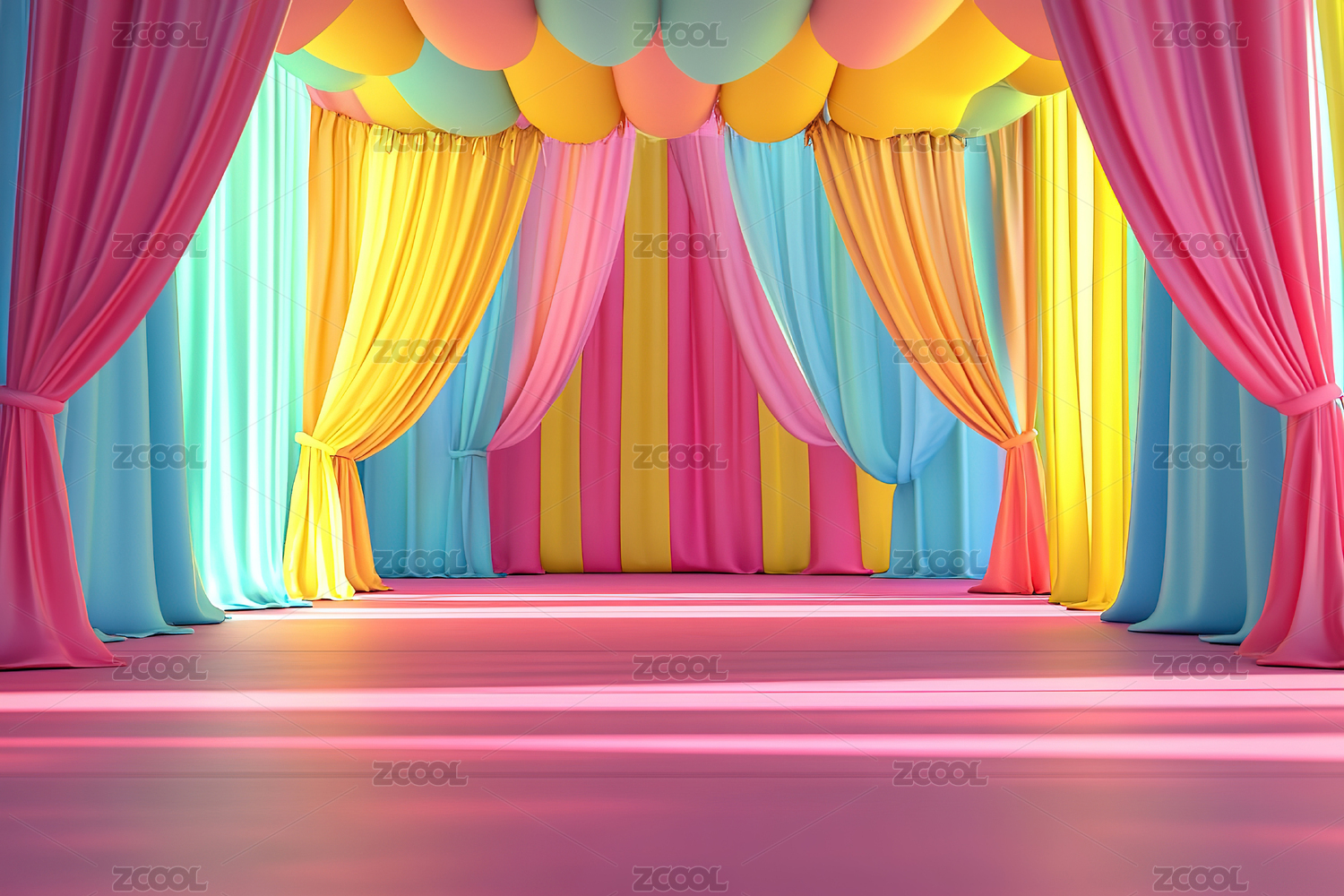 3d卡通舞台窗帘聚光灯愚人节舞台背景