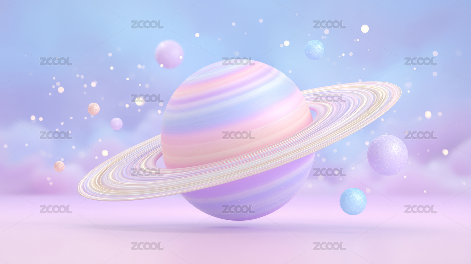 粉色可爱3D立体建模星球梦幻壁纸背景