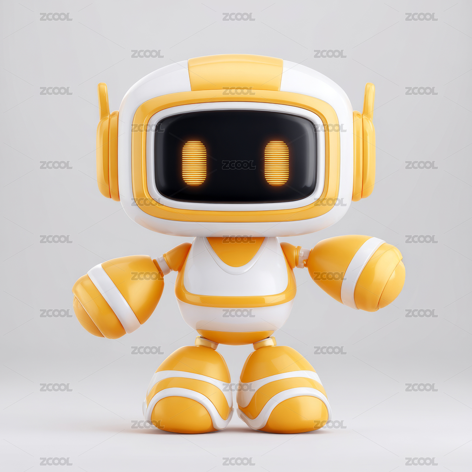 一个黄色机器人站在白色背景上