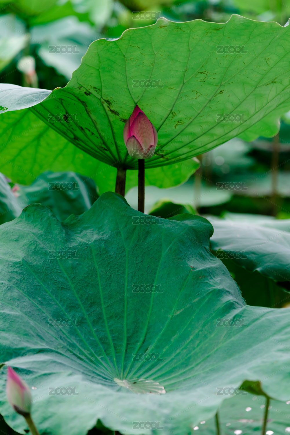 夏季青色荷叶中含苞待放的粉嫩荷花花朵