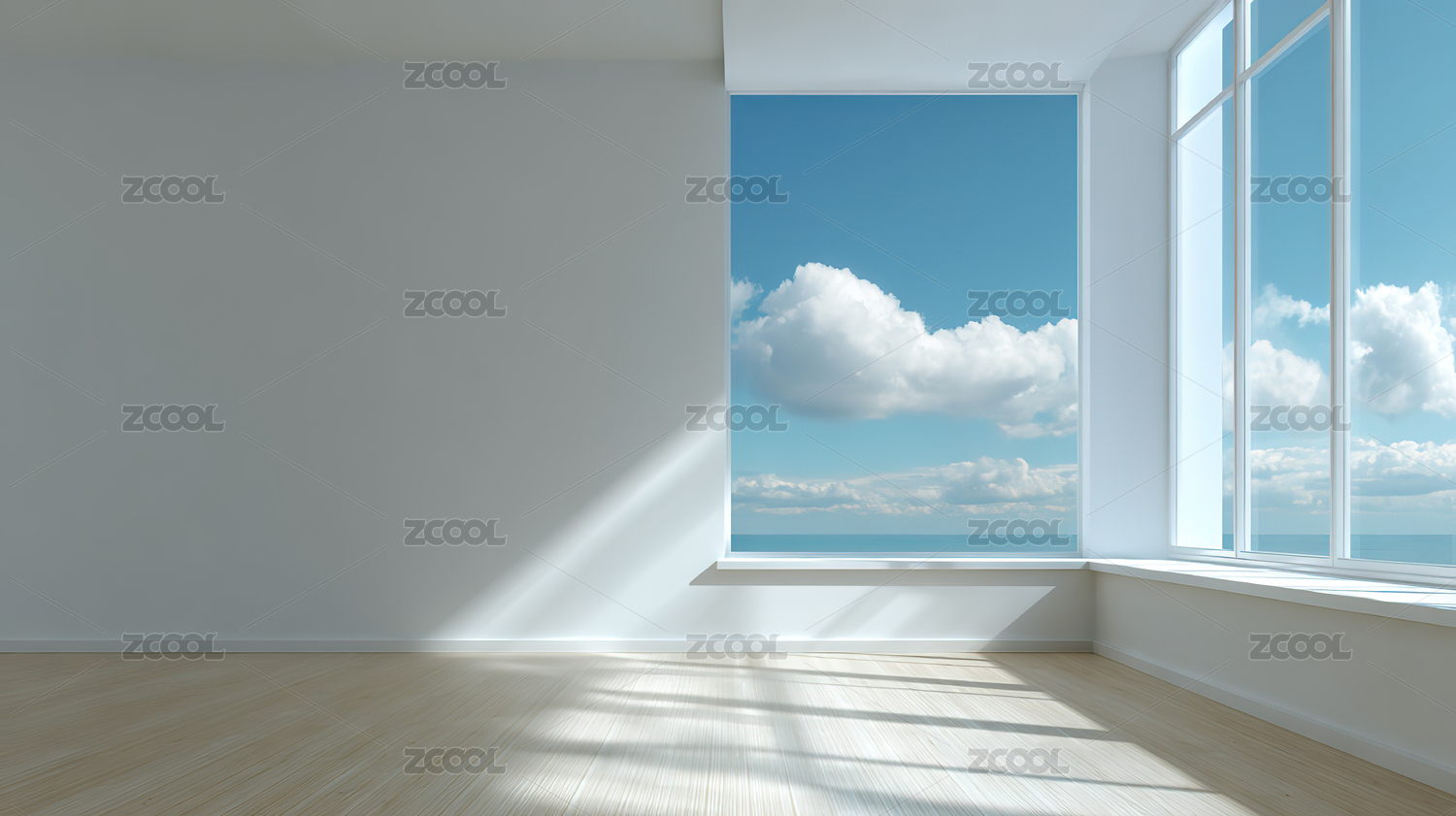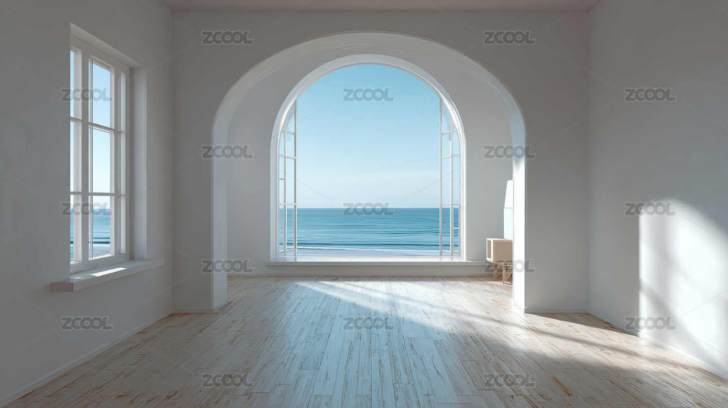 落地窗建筑内部大理石展厅带办公桌沙发窗外
