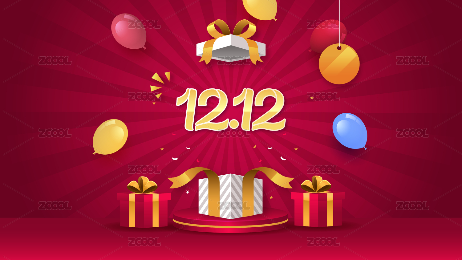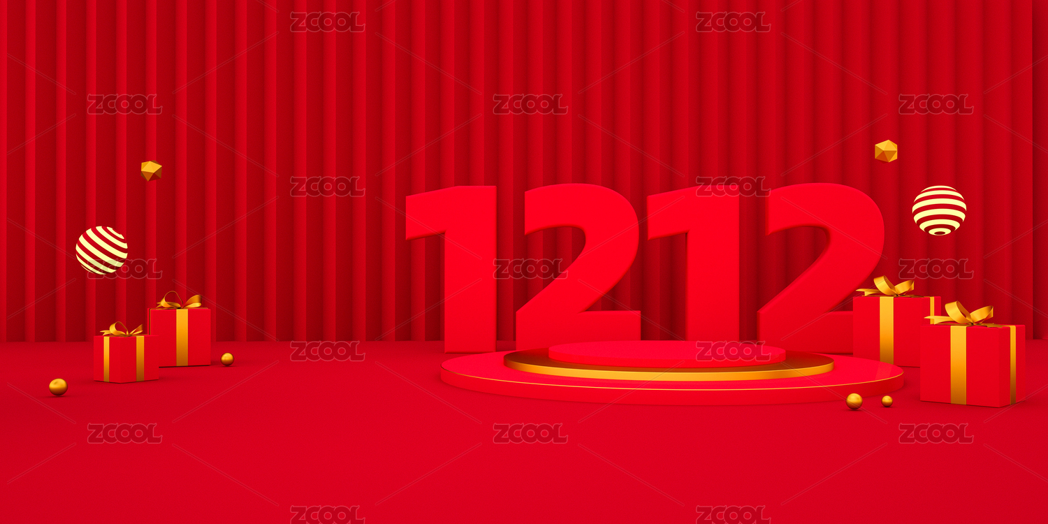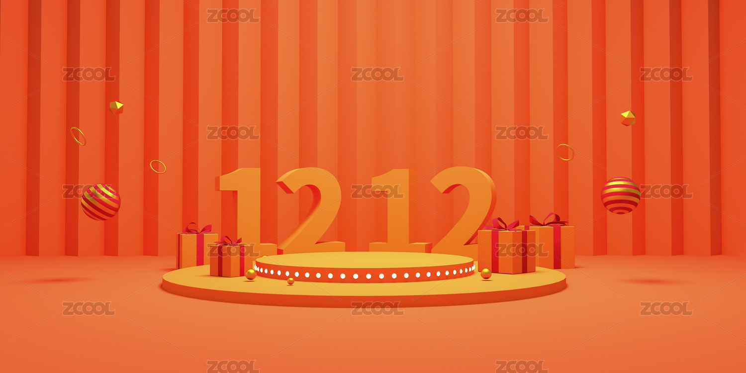 双十二3D展示台空间活动背景