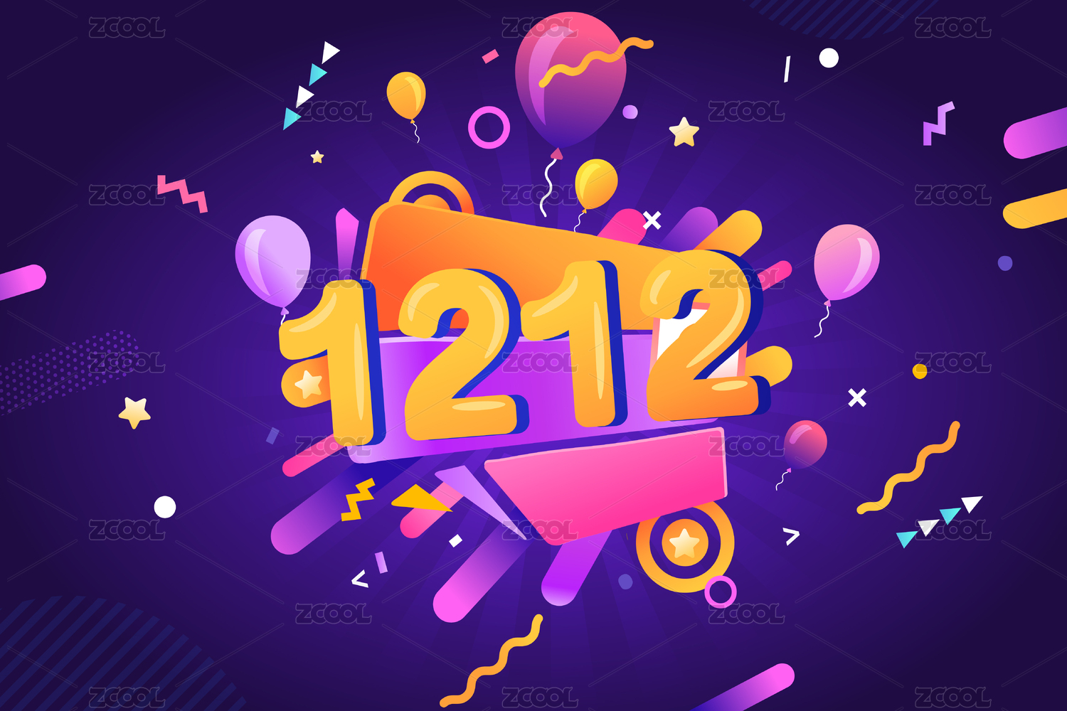 双十二电商促销背景矢量插画