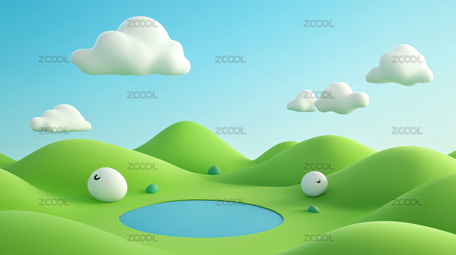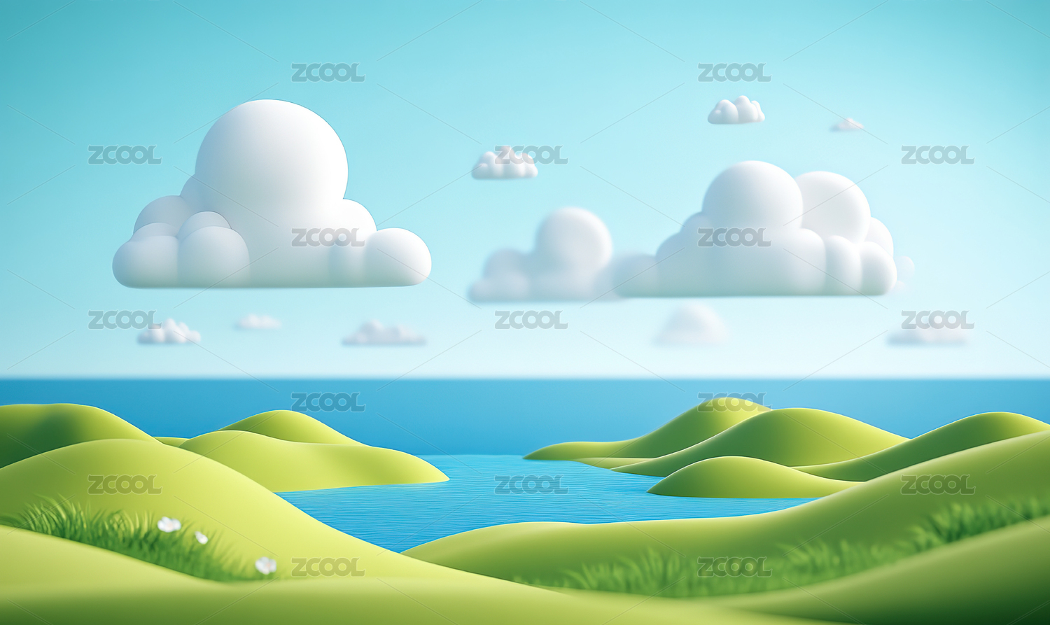 3d,背景,草,草地,草坪,插画,场景,春天,地平线,风景