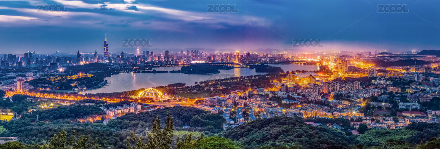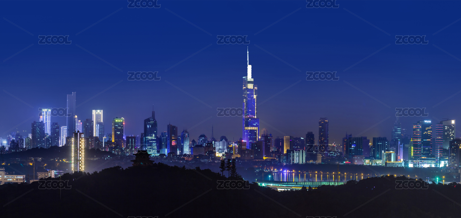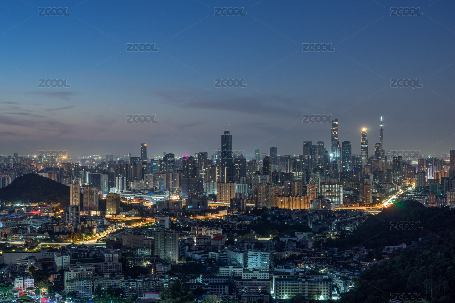 中国广州白云山远眺城市建筑天际线繁华夜景