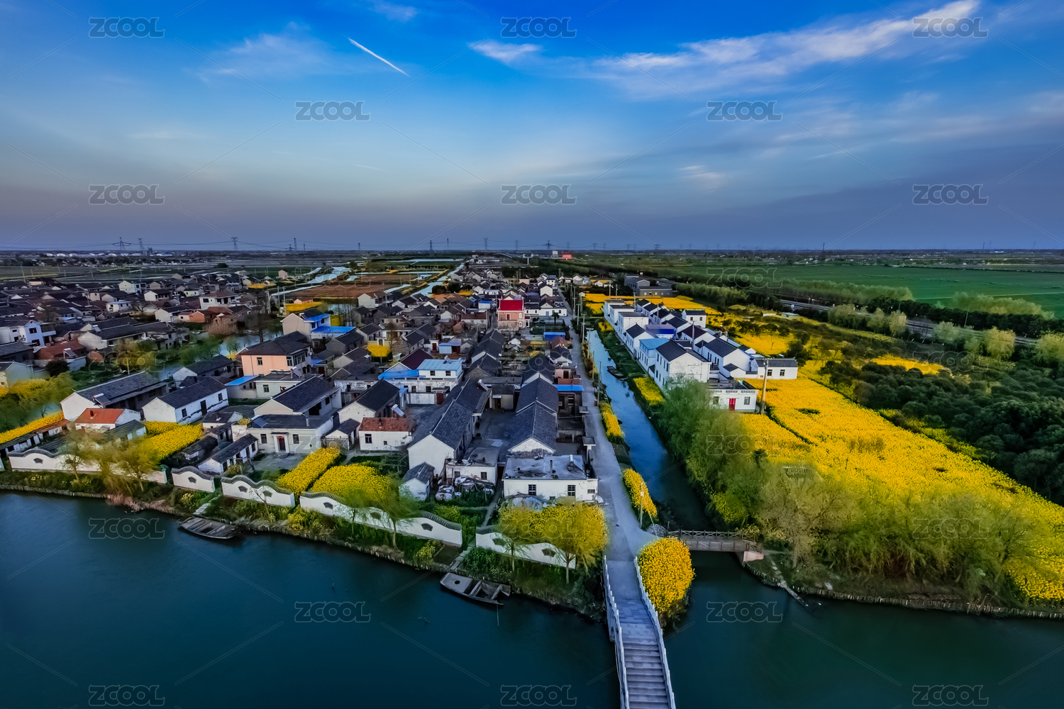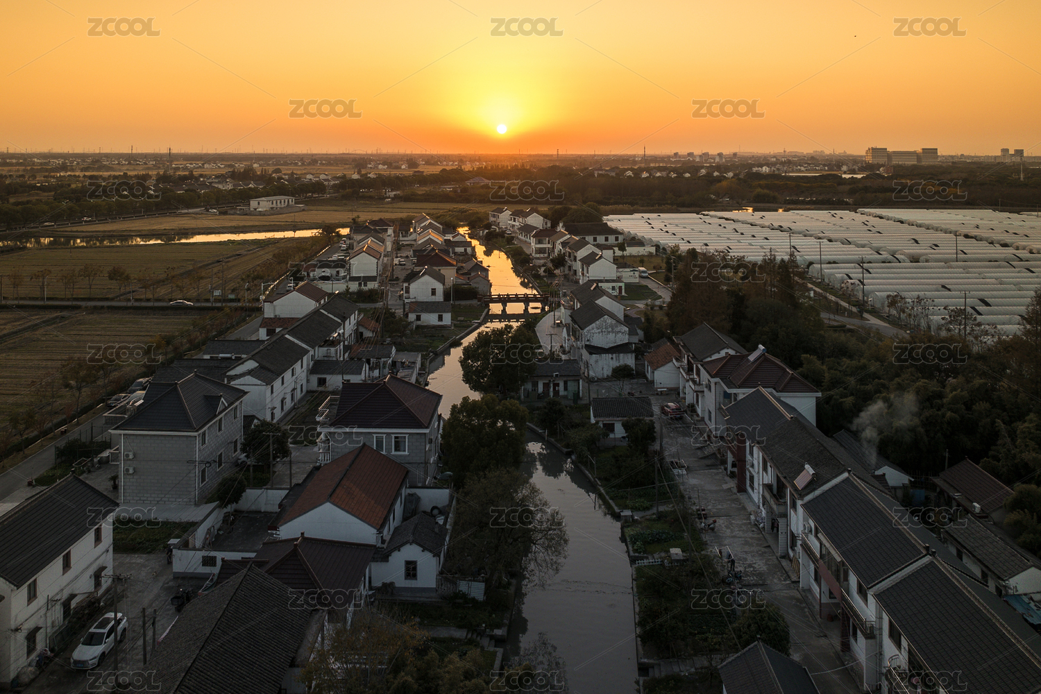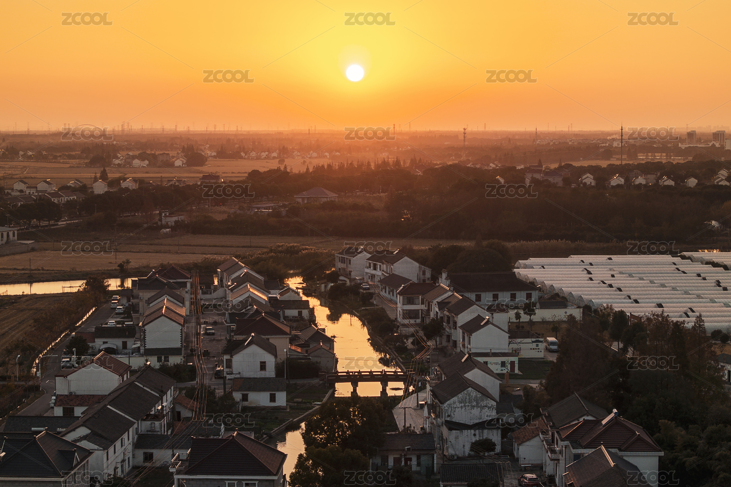 中国江苏省如东县暮色夕阳乡村田园住宅建筑
