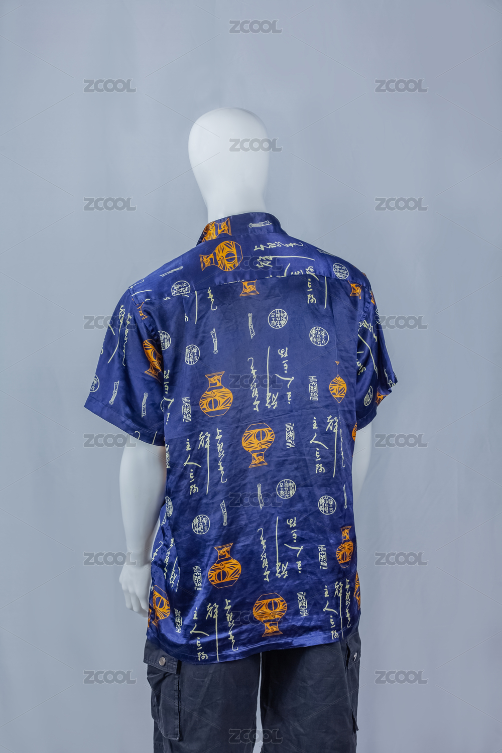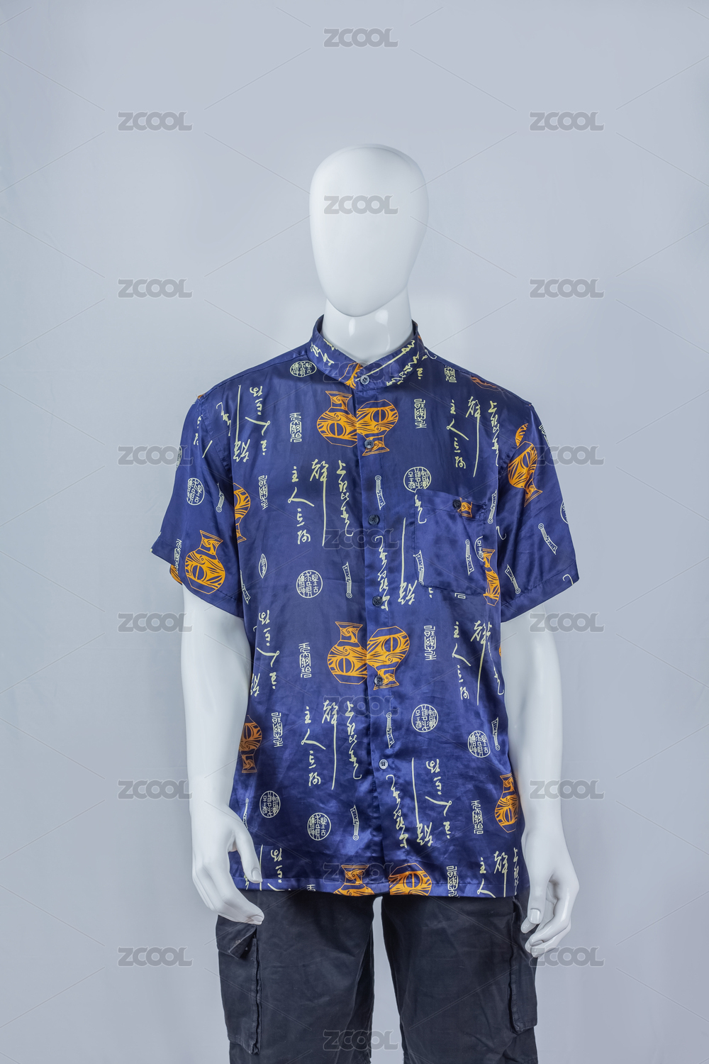 夏季男式唐式短袖衫丝织服装