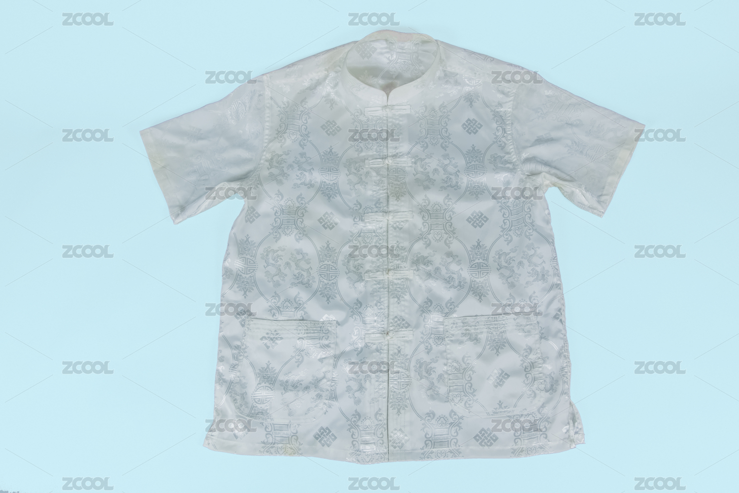 夏季男式短袖衫唐式服装丝织品
