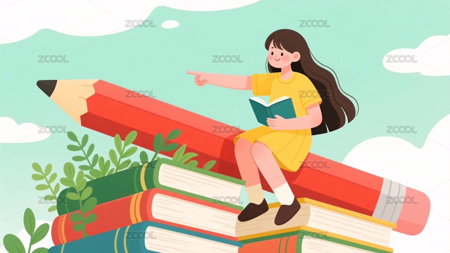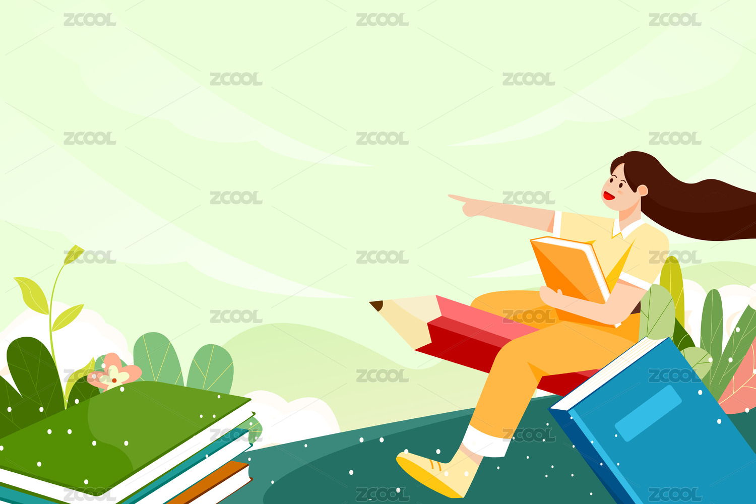 女孩读书卡通教育商业背景场景