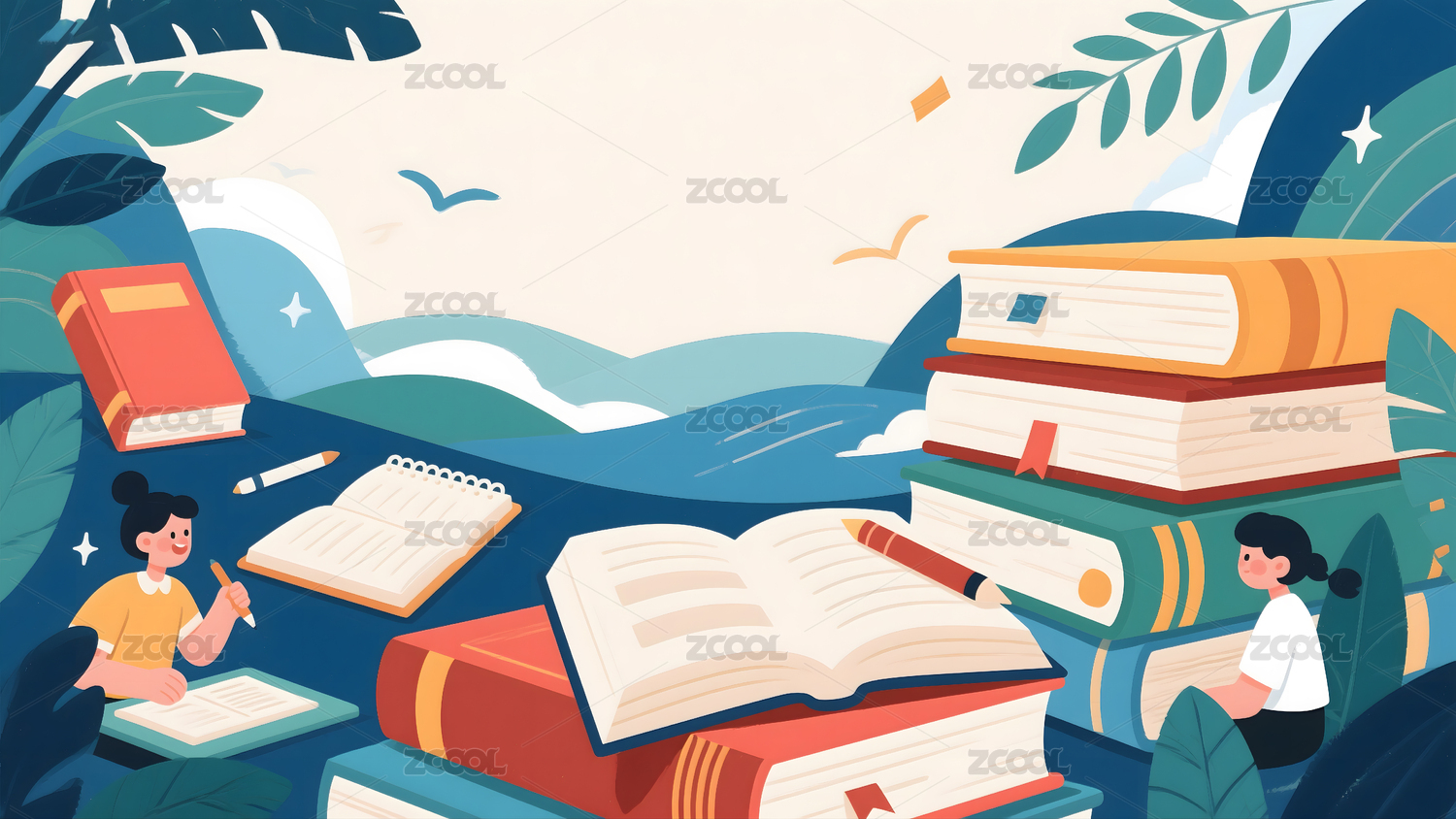 读书学习卡通插画