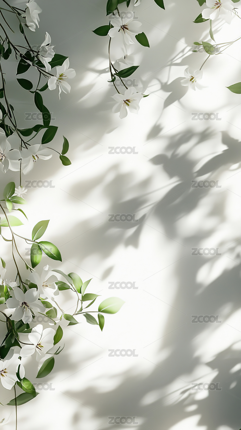 白色墙面上的树枝光影