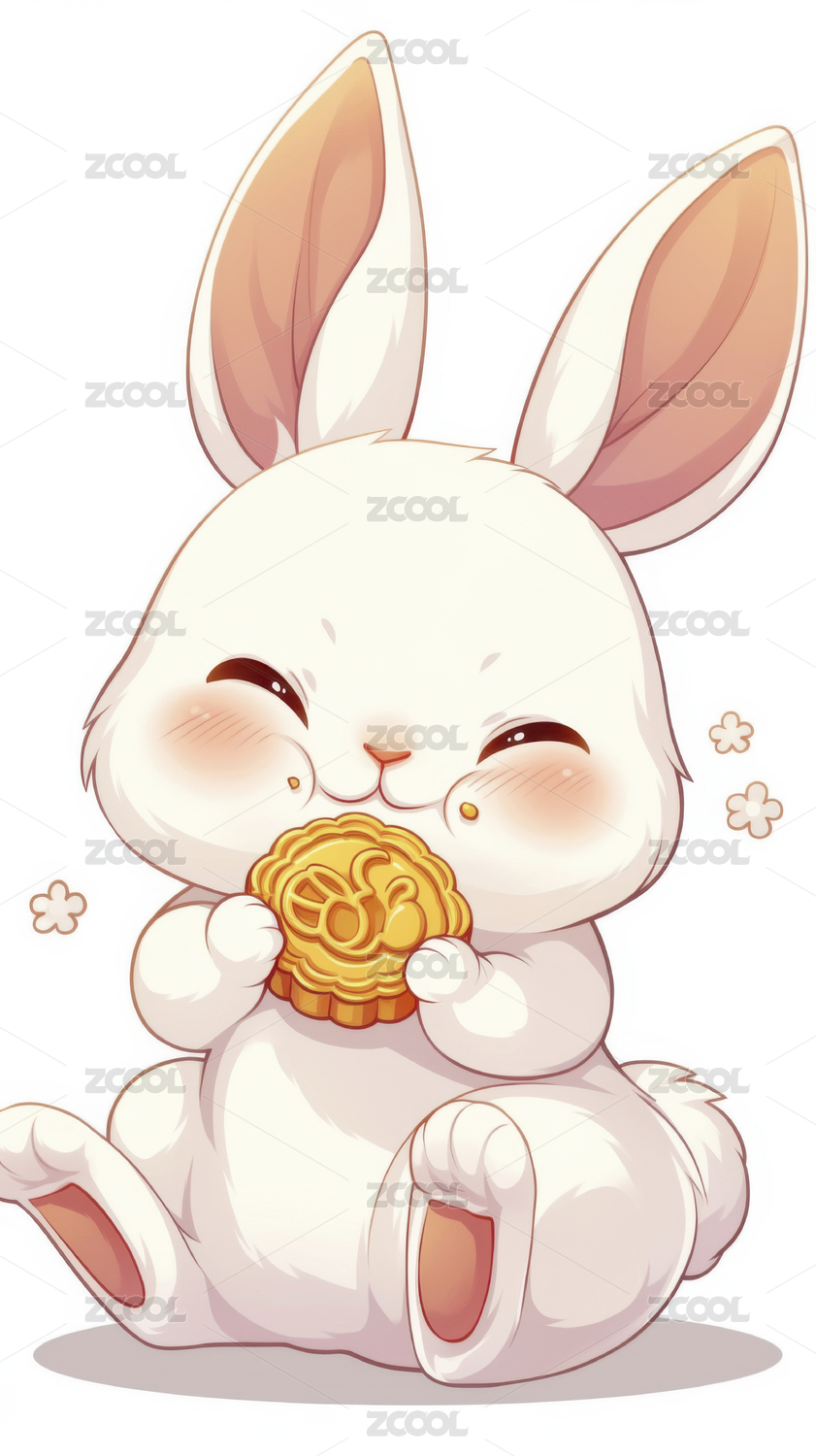 插画,节日,可爱,卡通,小兔子,白色,月饼,温馨,食物,中秋佳节
