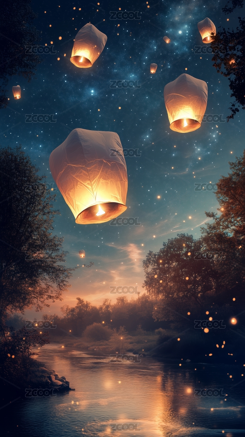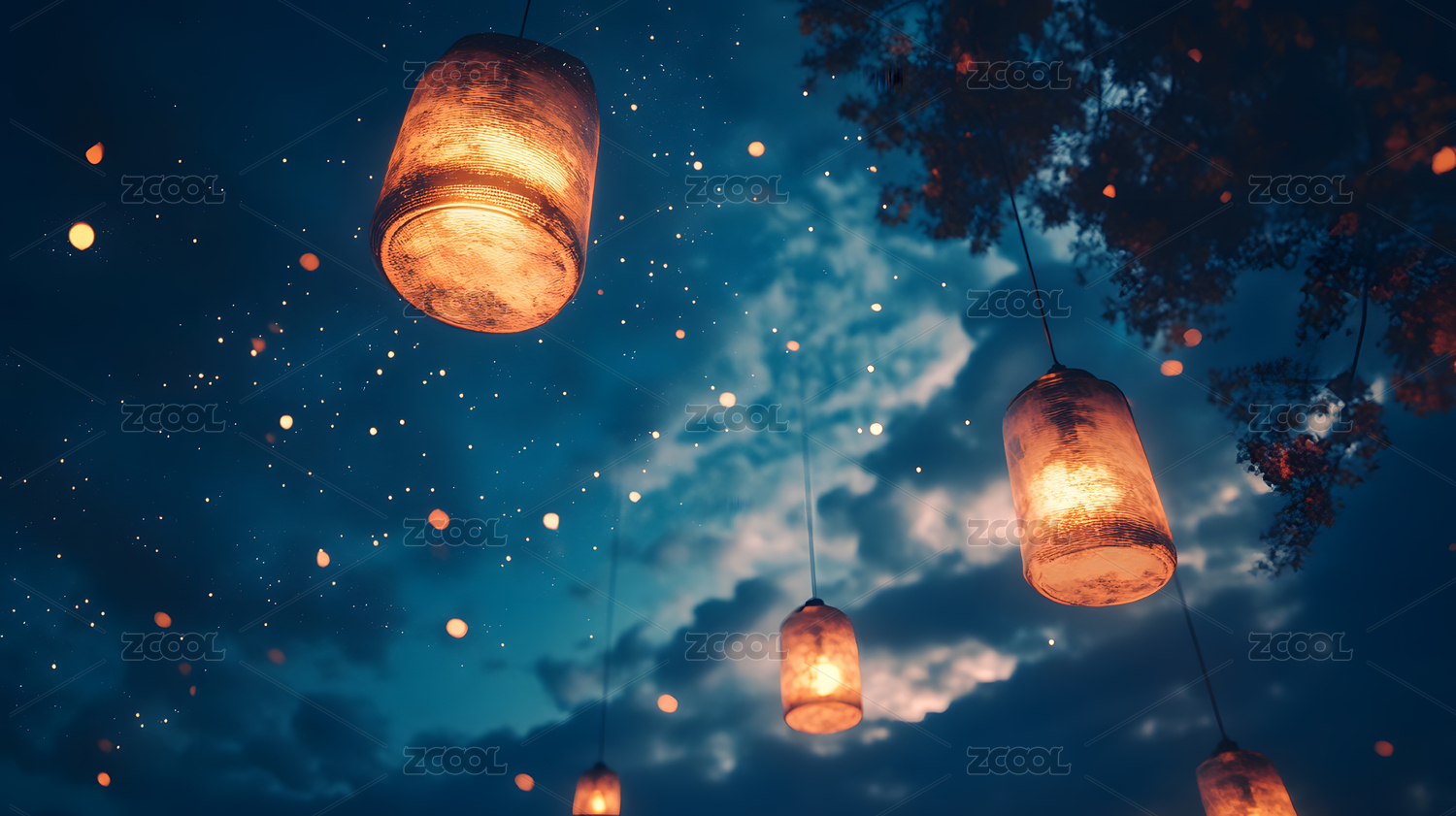 梦幻,夜晚,壁纸,背景,艺术,光影,灯笼,意境,唯美,树枝