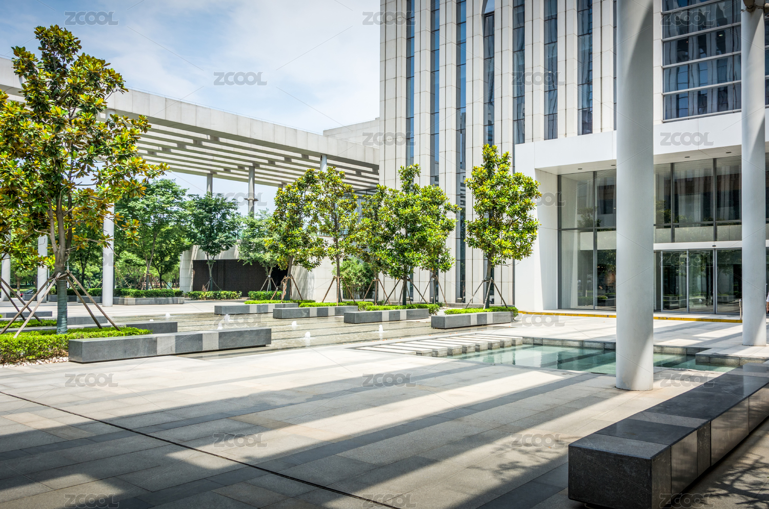 城市街道商业办公楼圆形天井及螺旋楼梯