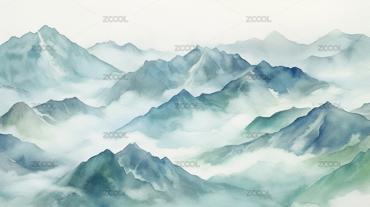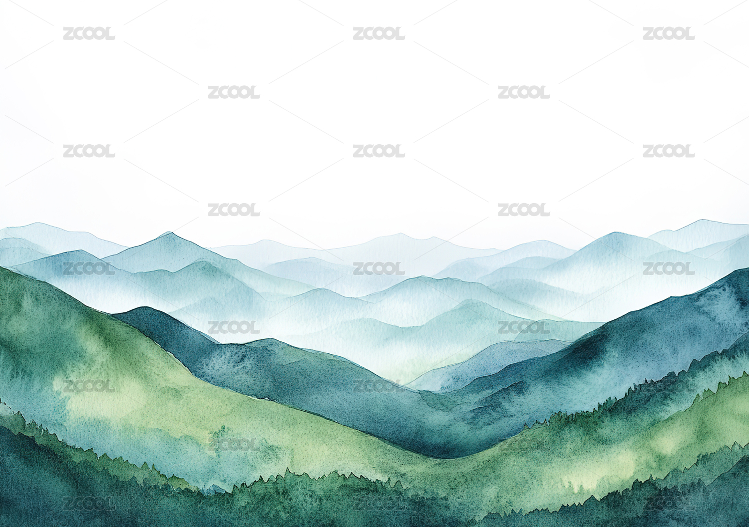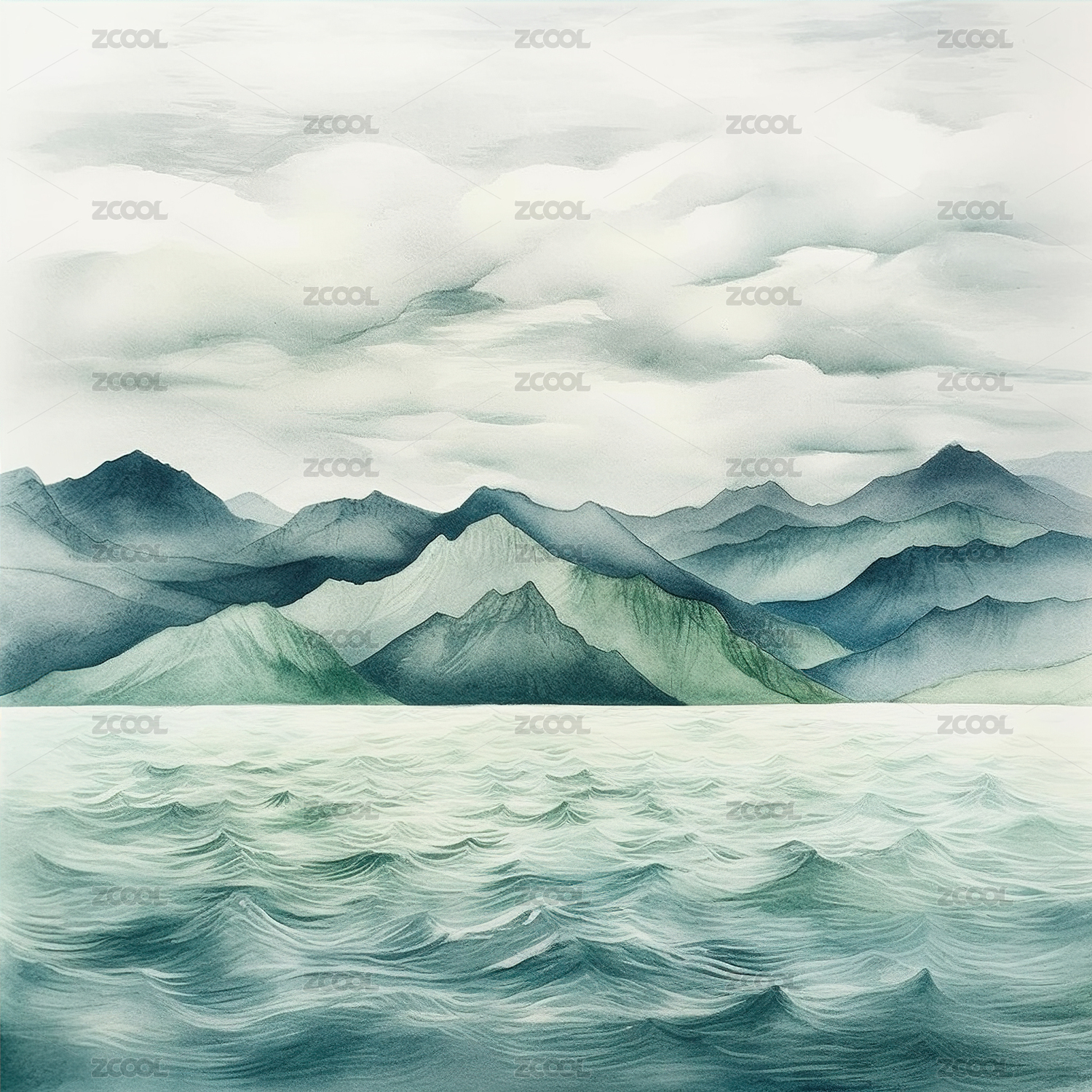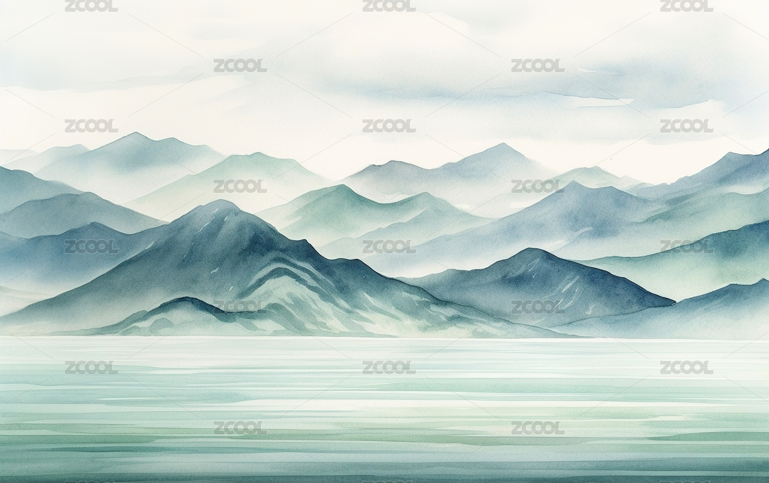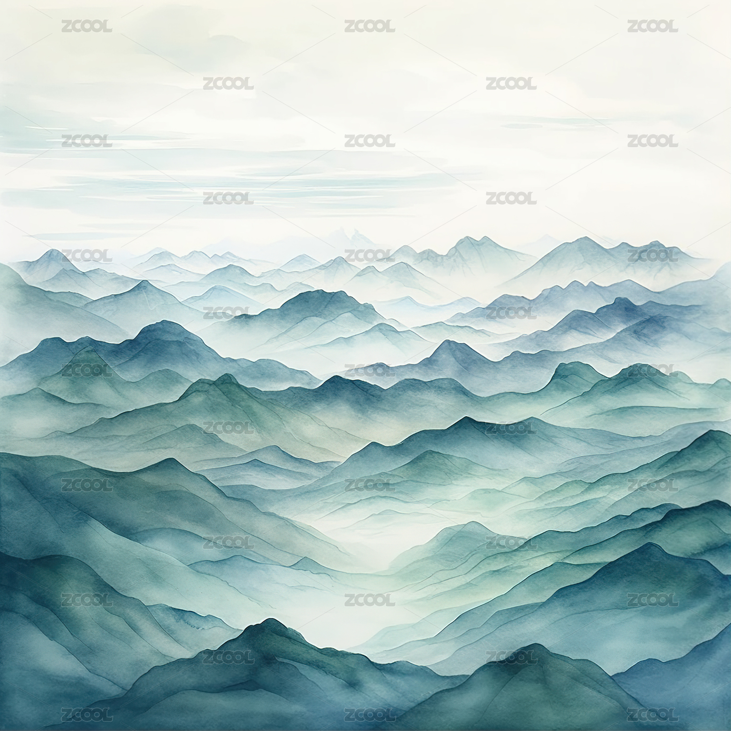 水彩,淡彩,绘画,传统,中国,风格,风景,山,自然,天空