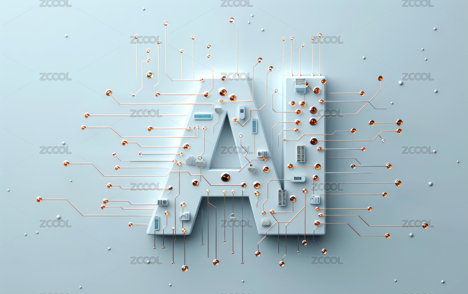 科技感电路光效环绕的AI字母图