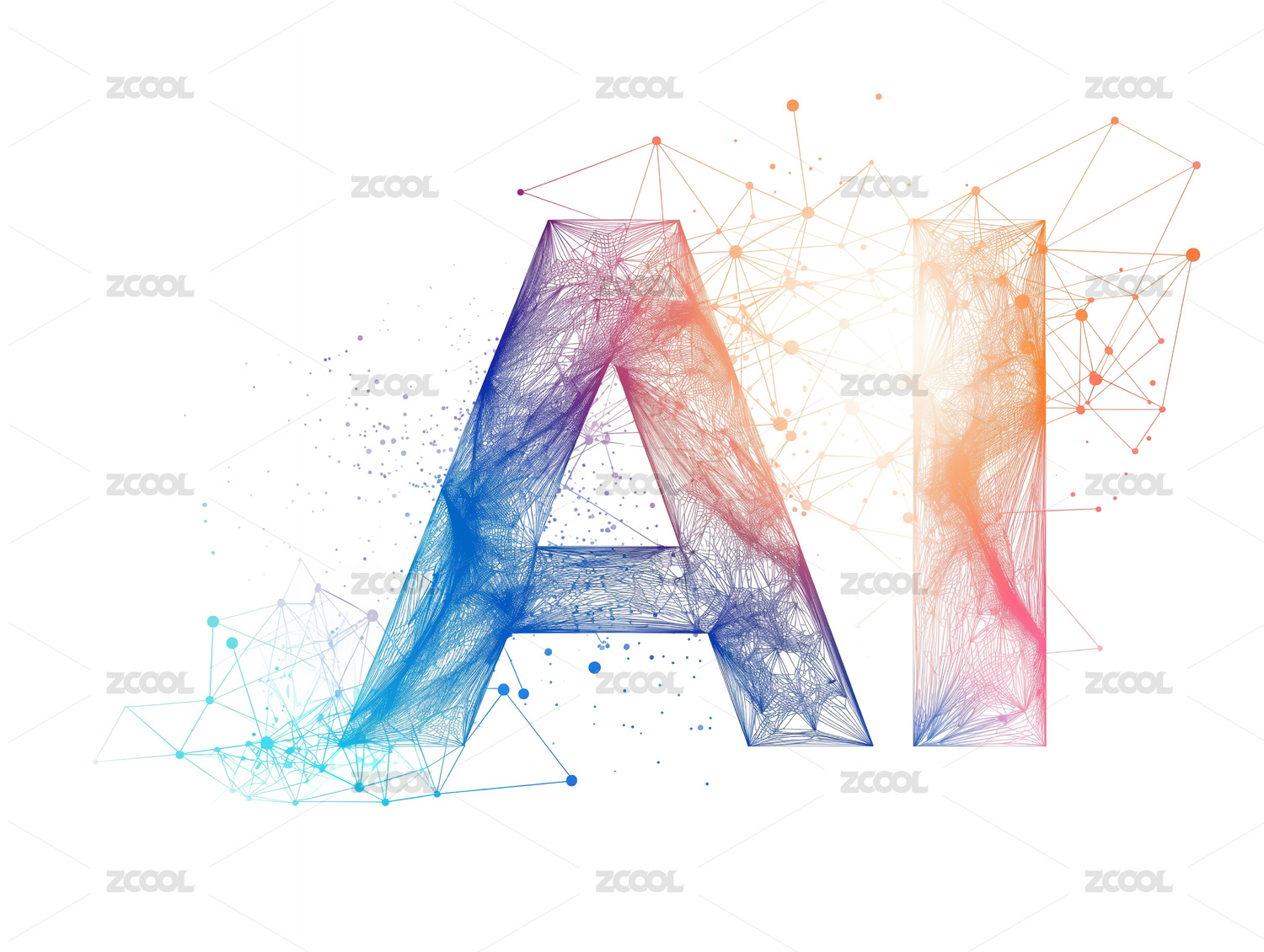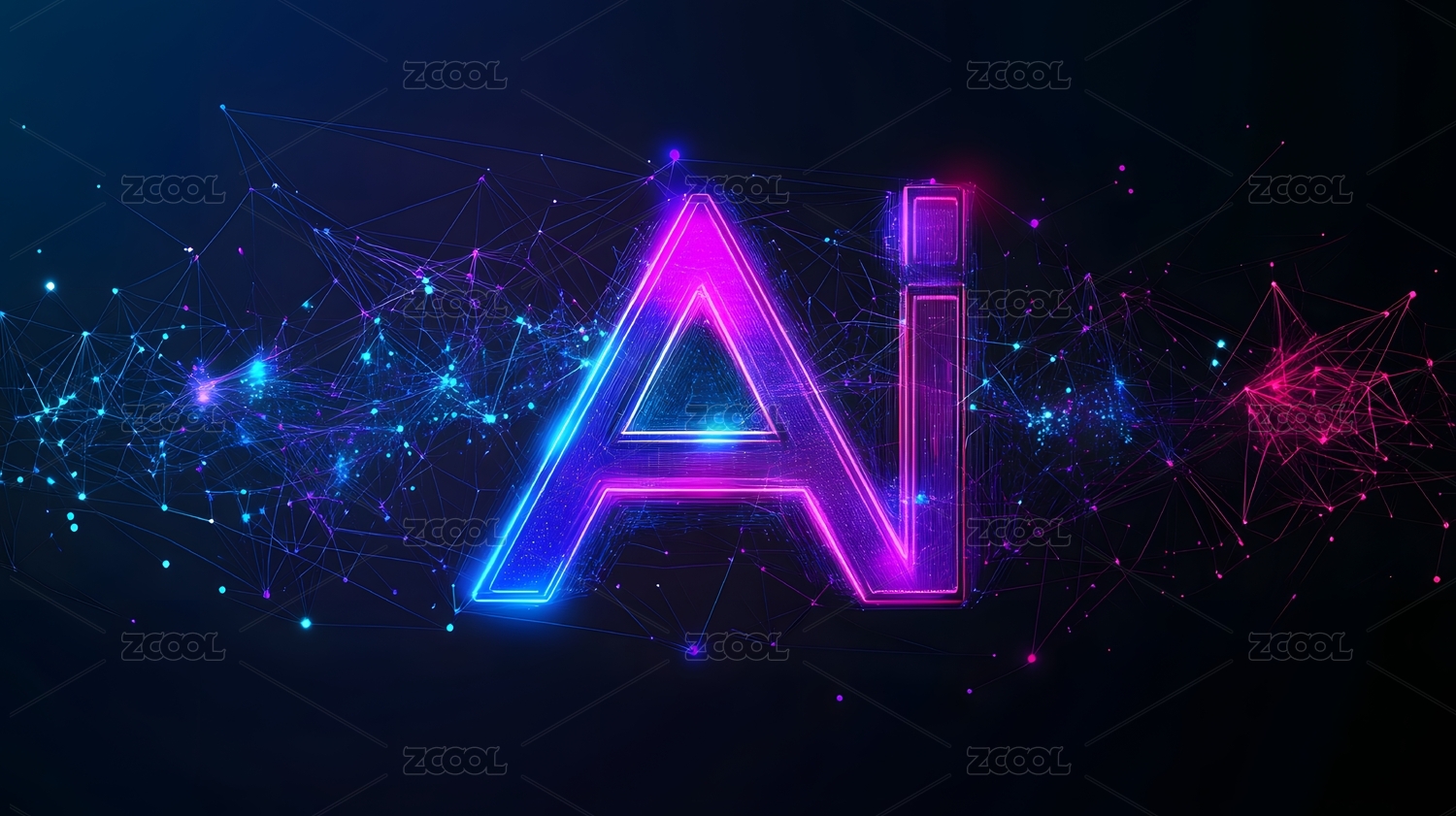 科技线条背景上AI艺术字