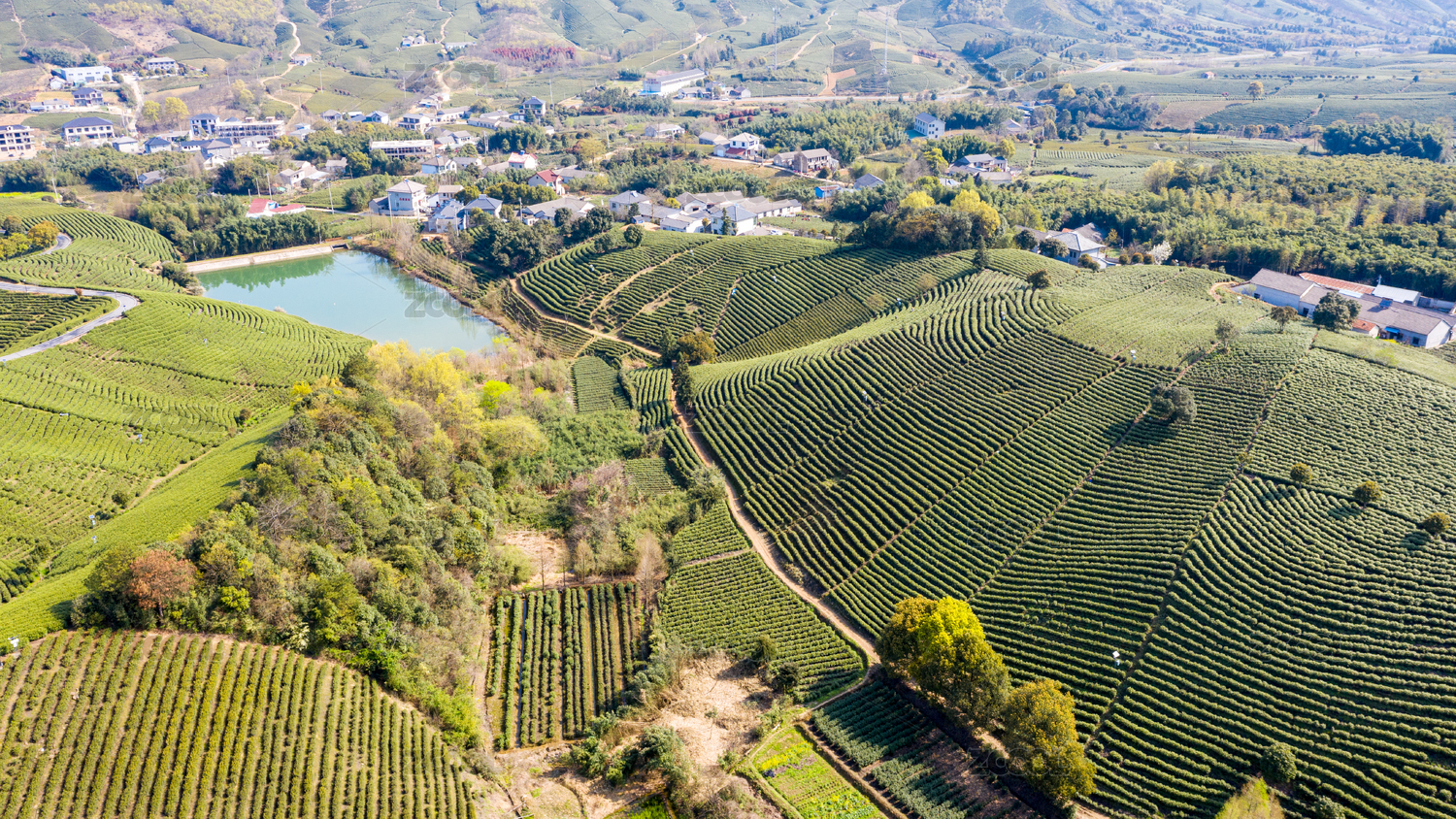 航拍浙江龙坞镇的龙坞茶园村庄景观