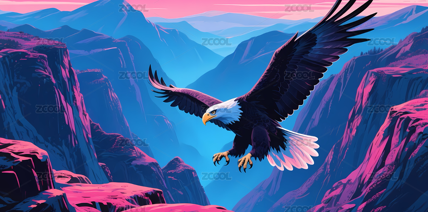 天空中飞翔的白头鹰日本浮世绘艺术插画