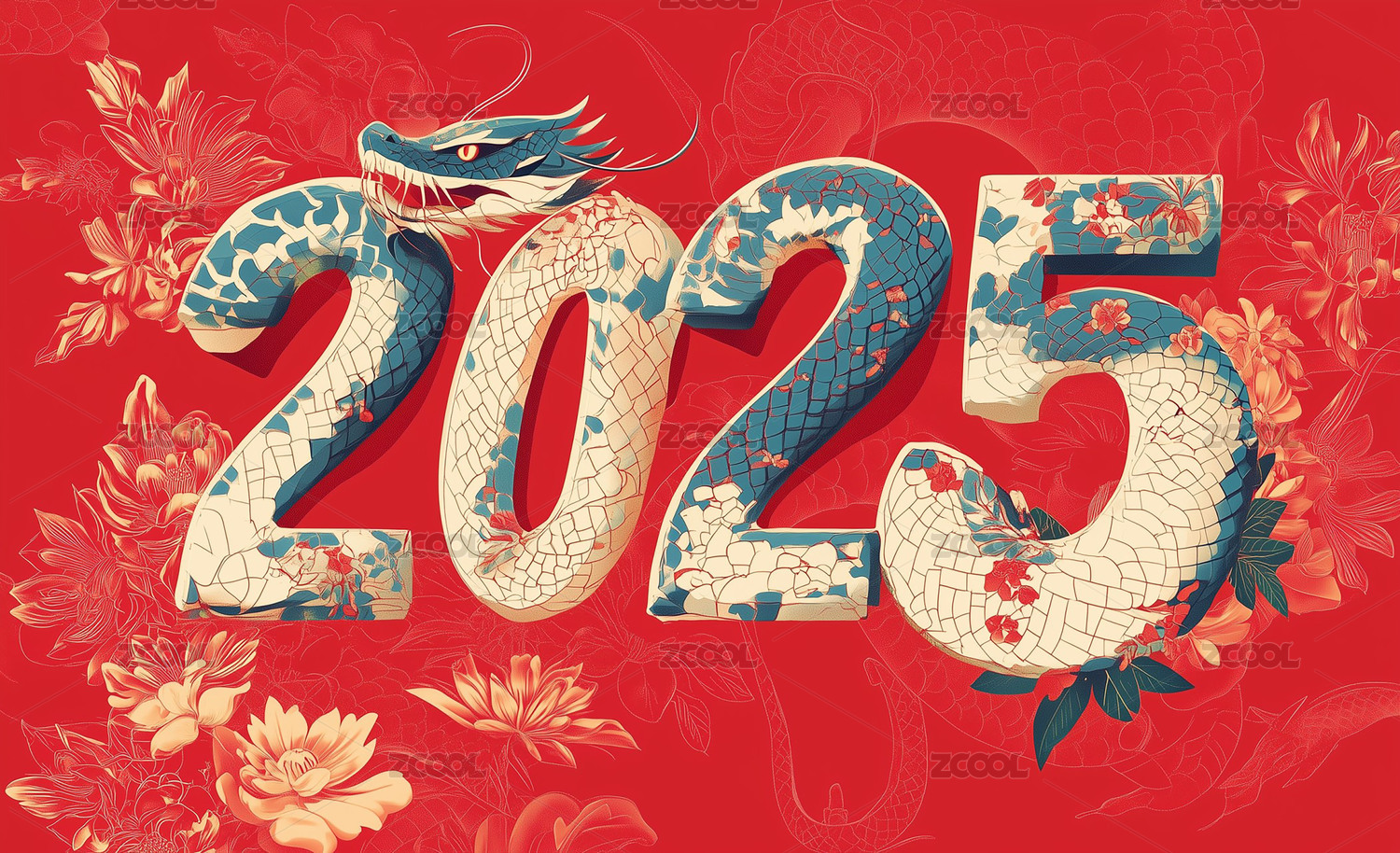 2025,2025年,蛇,蛇年,趣味,色彩,线条,扁平,现代极简,植物