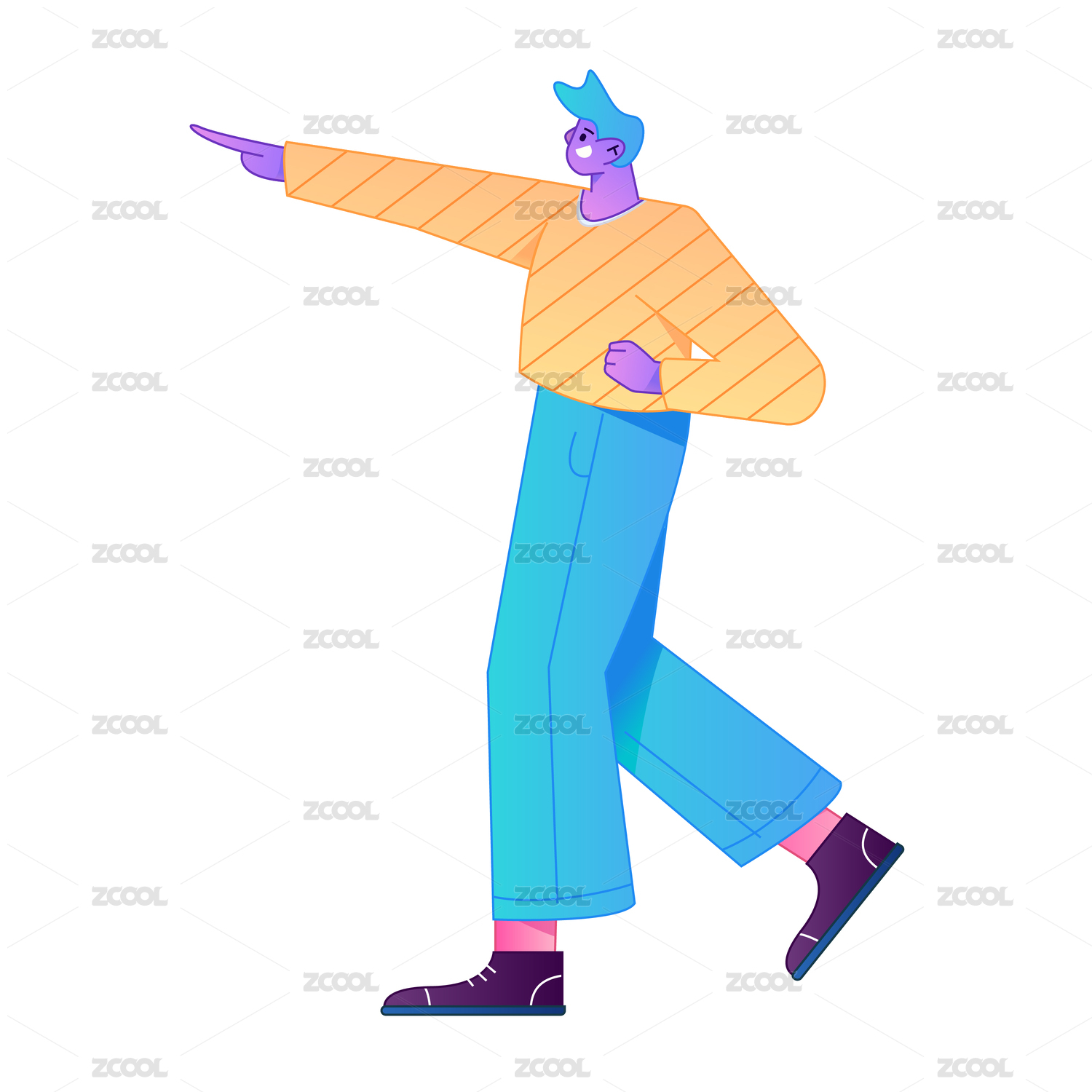 人物站姿肢体动作自信展示矢量扁平渐变插画