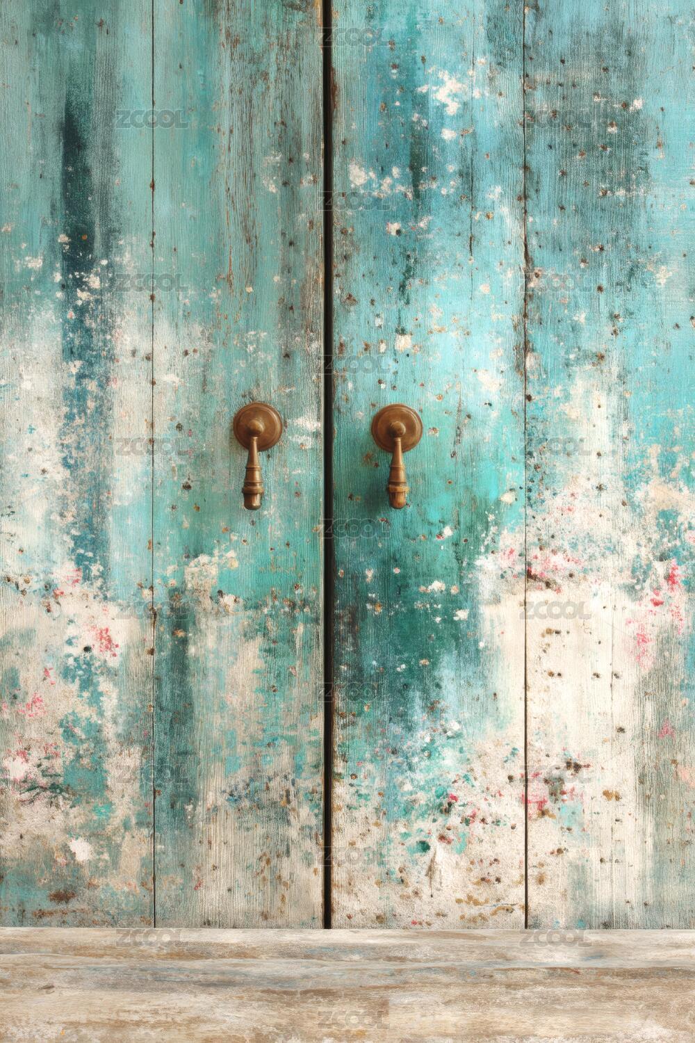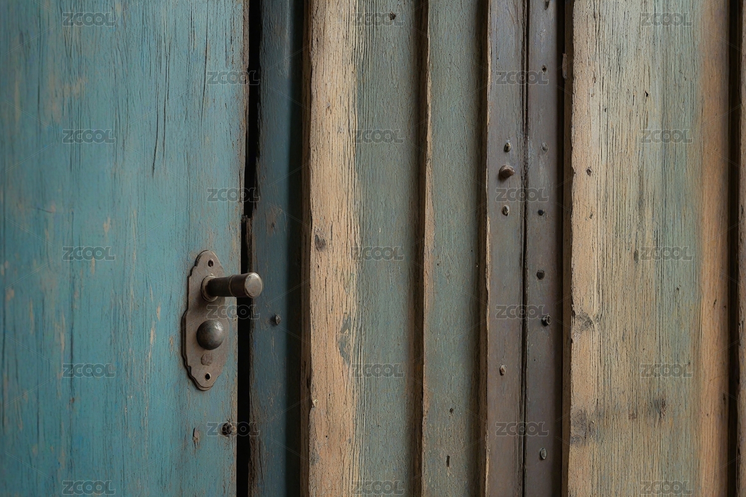 旧木门,绿色,白色,门把手,铰链,木纹,磨损,油漆,剥落,复古