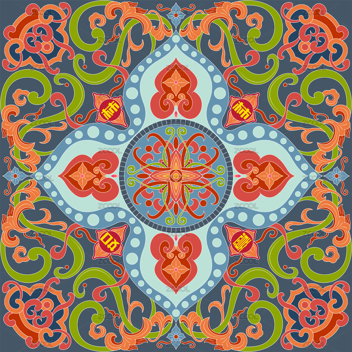 敦煌纹样四方连续图案无缝纹理图手账贴纸