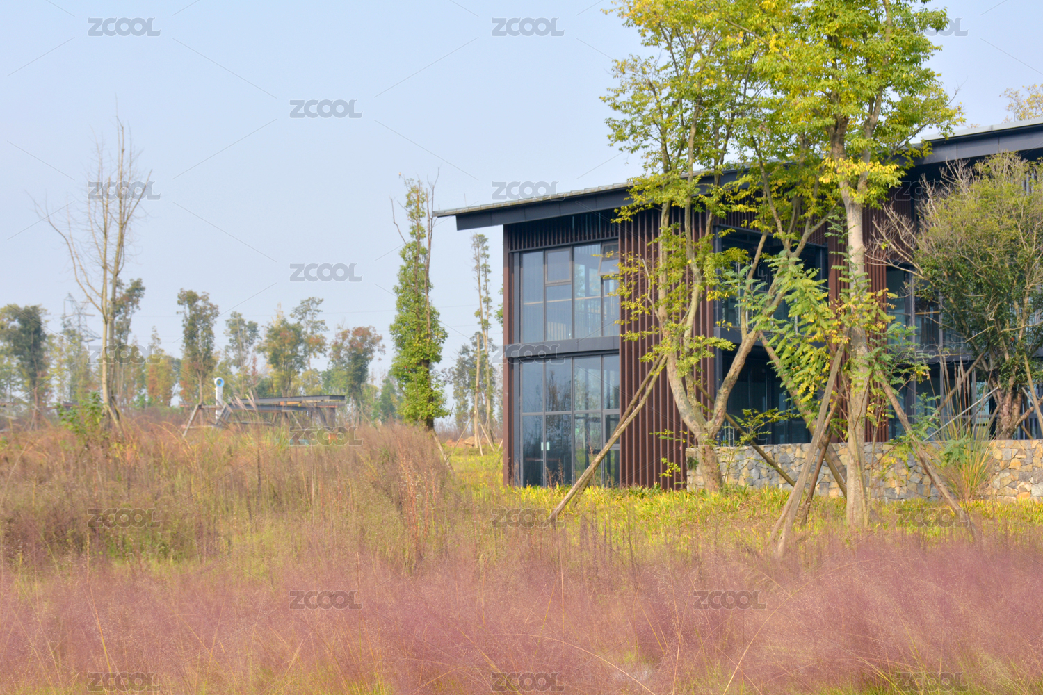 成都玉石湿地公园粉黛乱子草及玻璃阳光房
