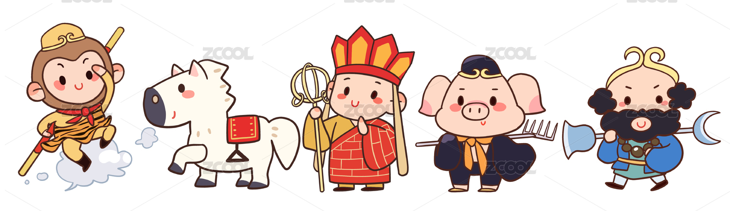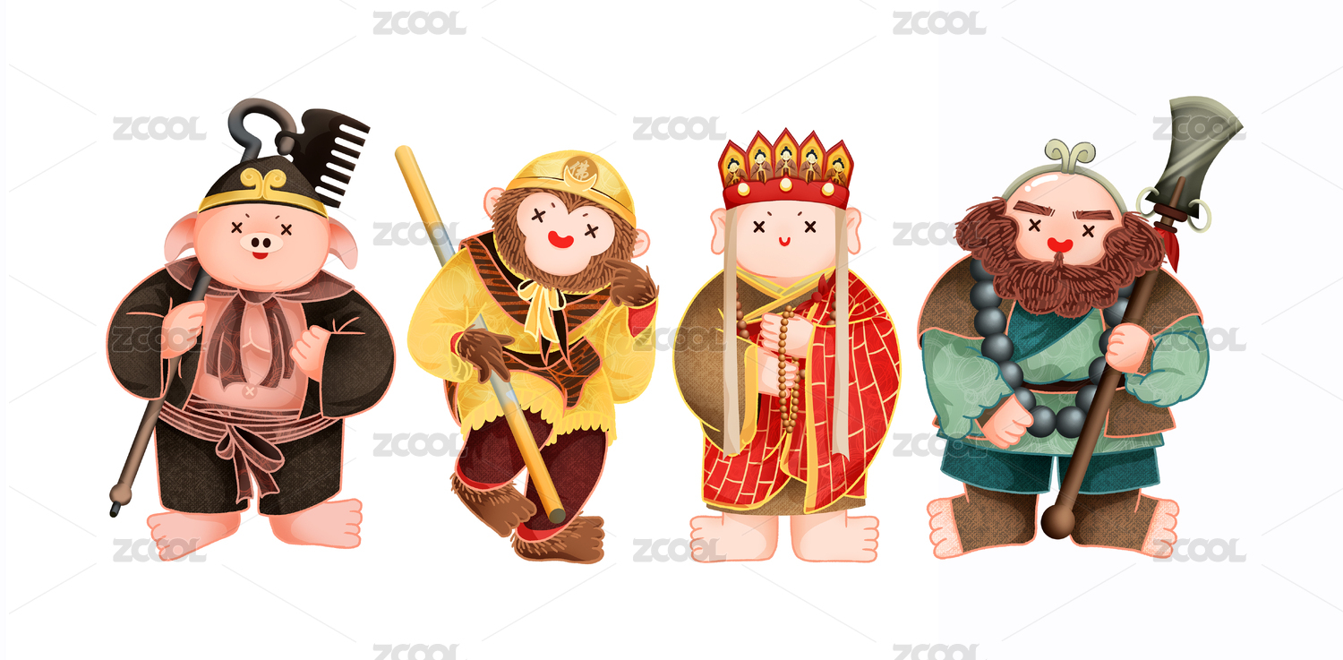 西游记,唐僧,孙悟空,猪八戒,沙僧,沙和尚,插画,可爱,人物,师徒