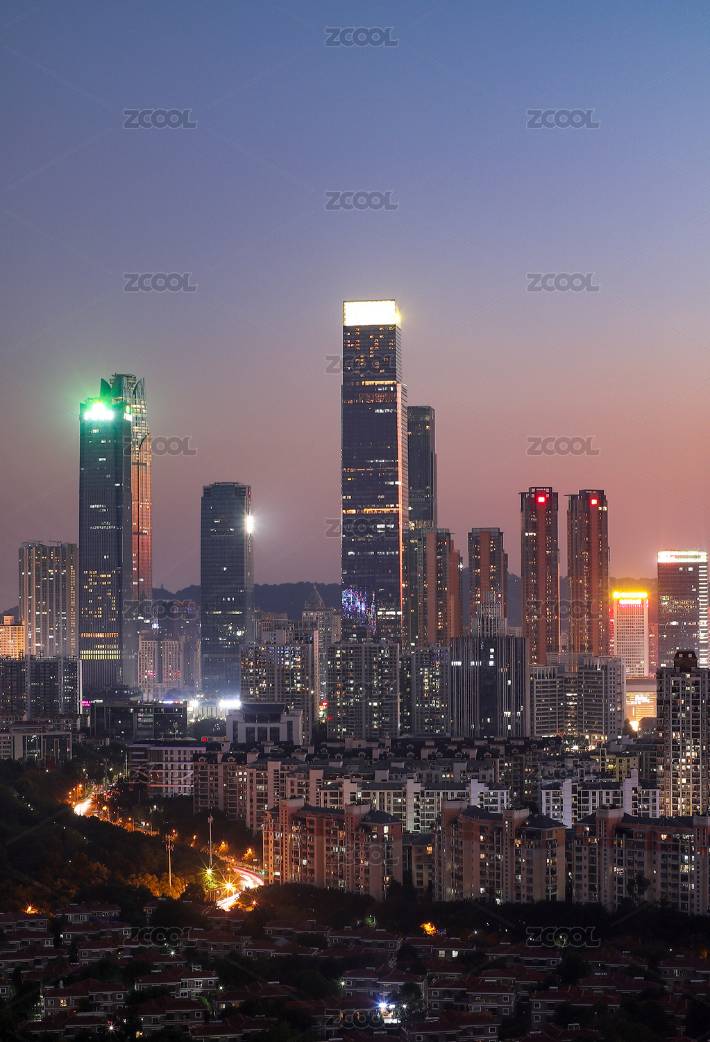 深圳福田区cbd中心商务区繁华城市夜景