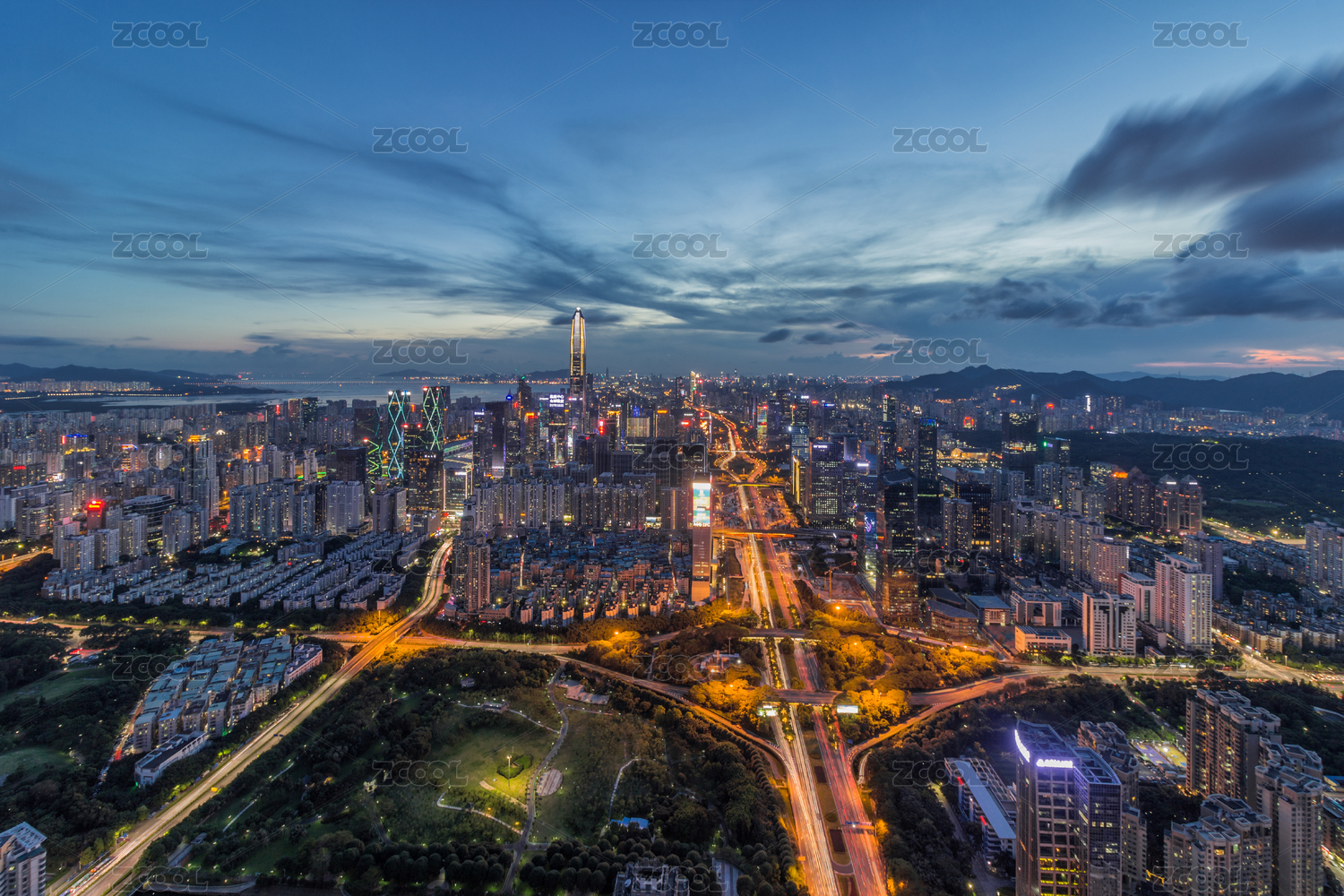 深圳,福田,CBD,平安大厦,晴天,航拍,大湾区,城市,灯光,夜景