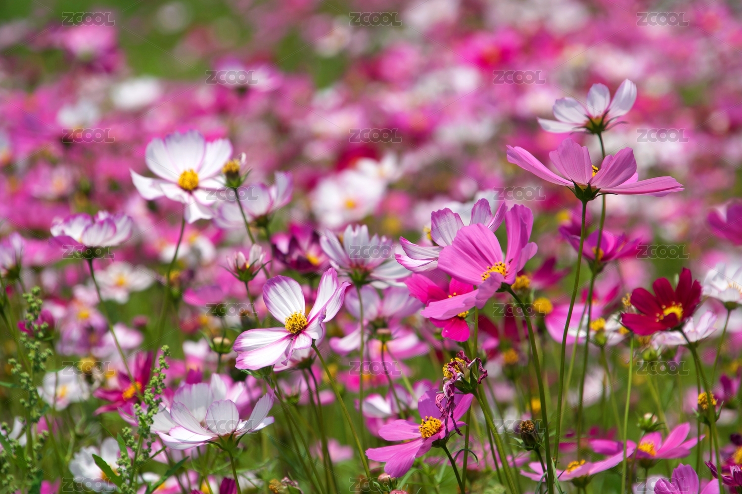 大片盛开的波斯菊
