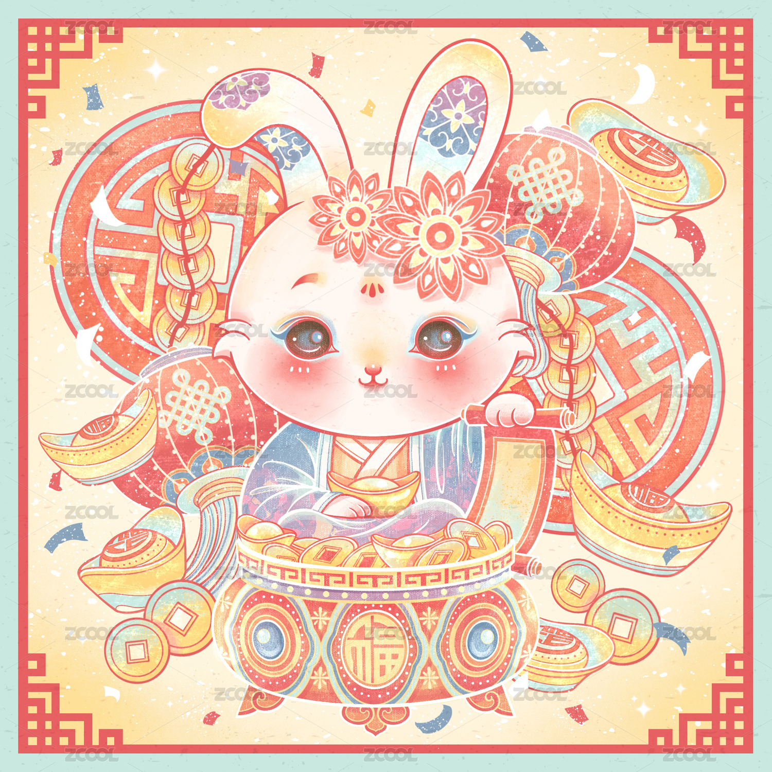 卡通国潮风兔年玉兔