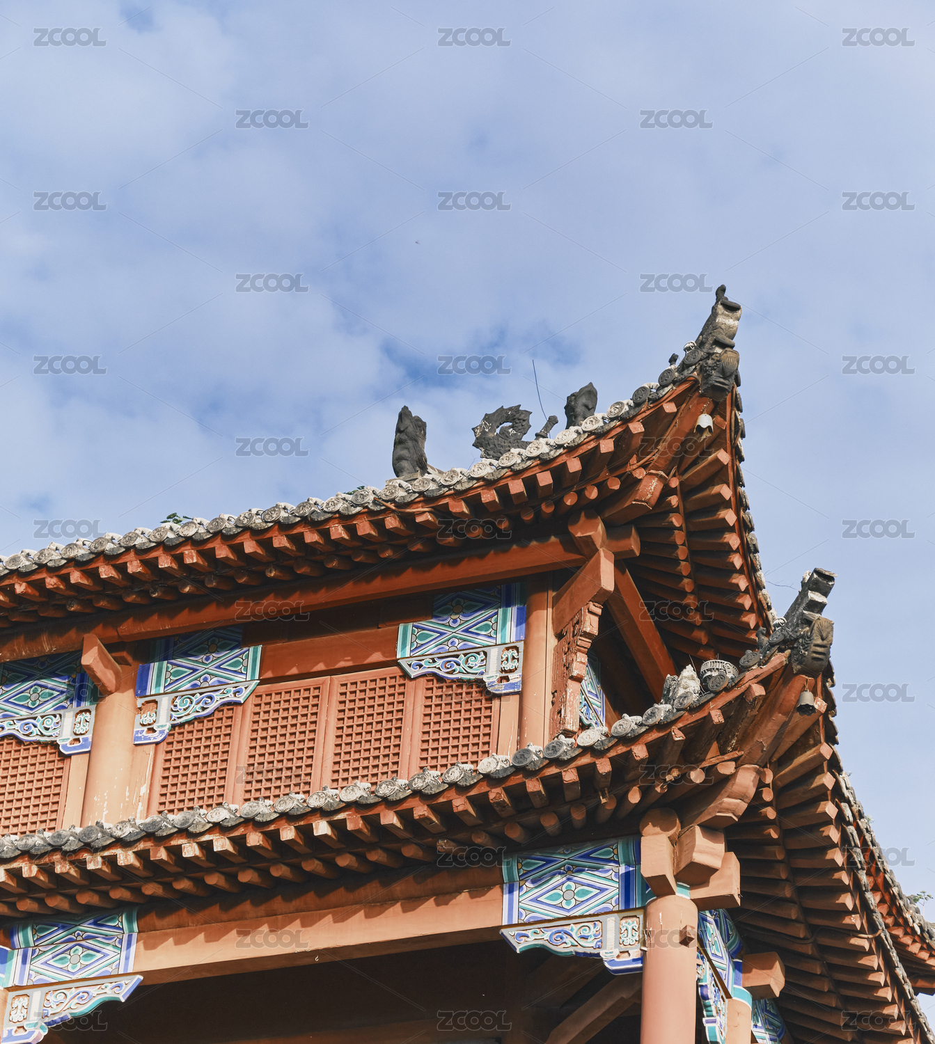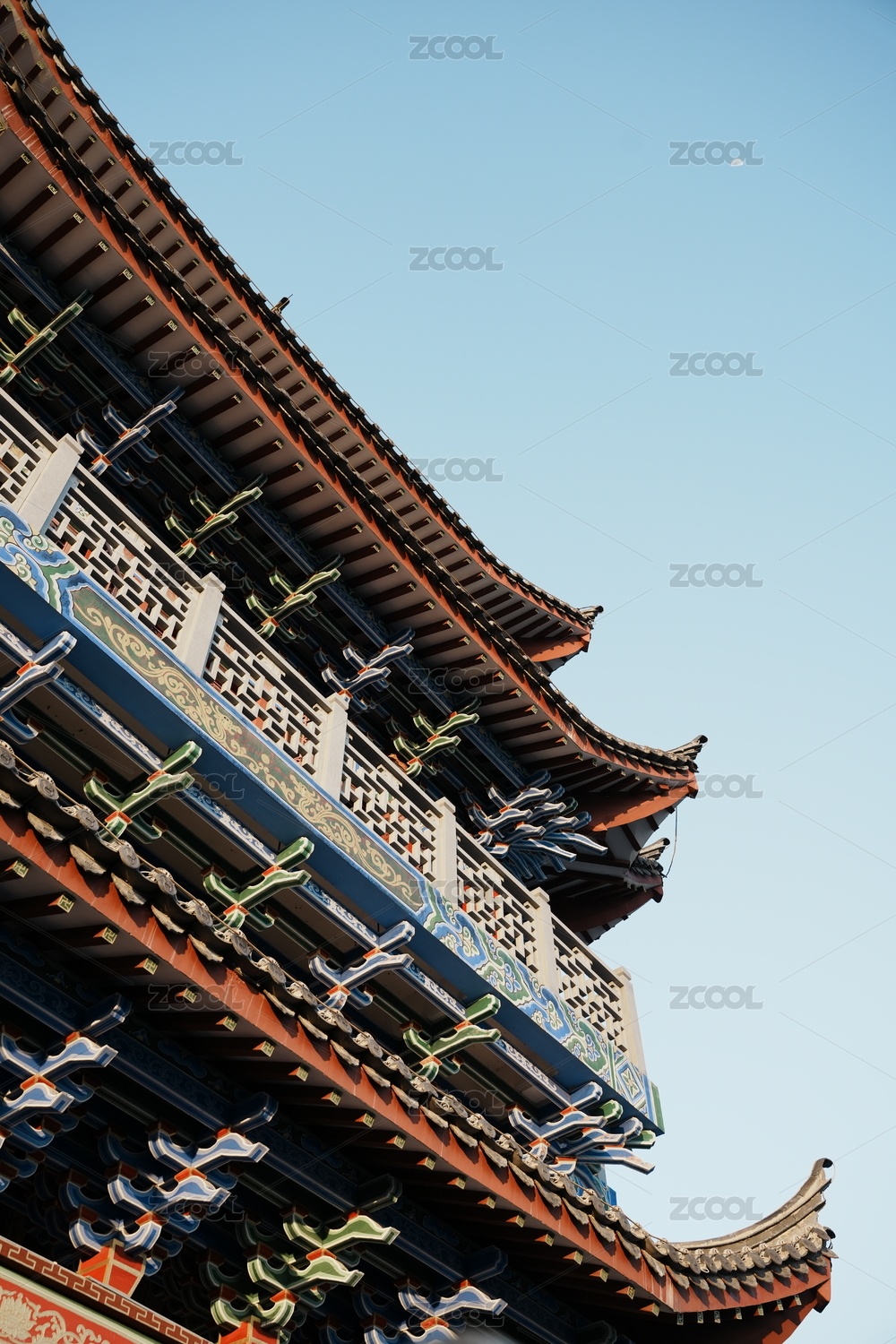 武汉宝通寺仿古建筑仰拍飞檐翘角