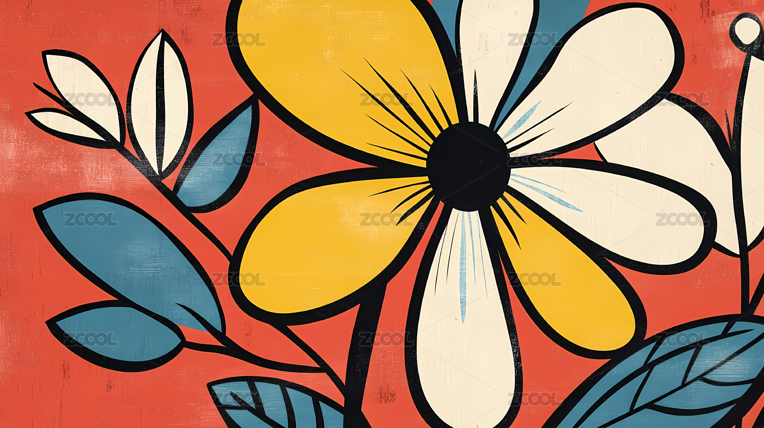抽象,植物,雏菊,丁香,简约,多彩,纹理,图案,复古,自然