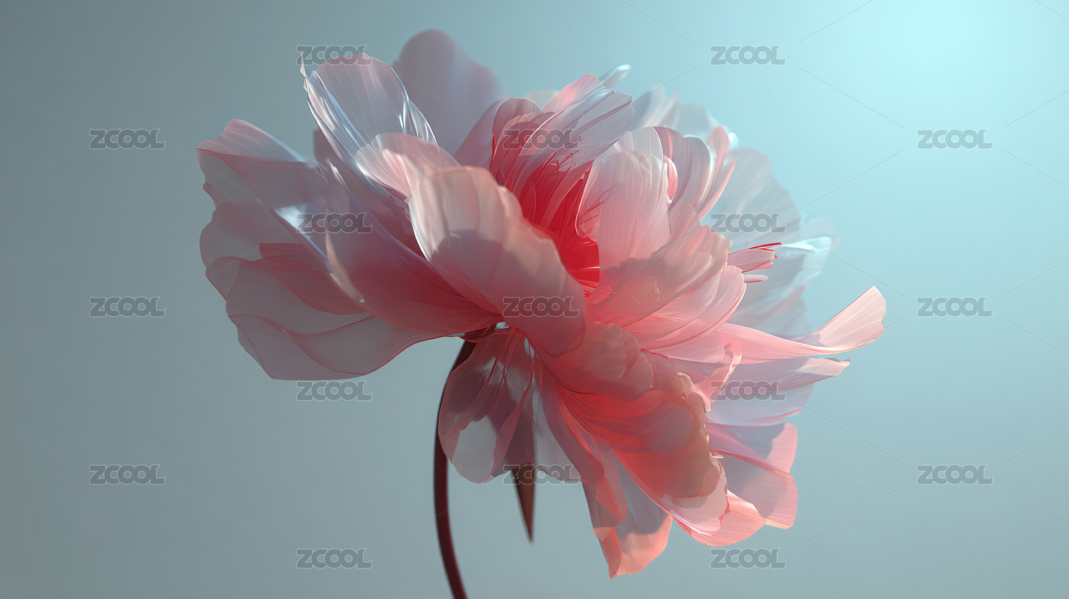 蓝色,白色,半透明,康乃馨,玻璃,全息,植物,3d,花朵,水晶