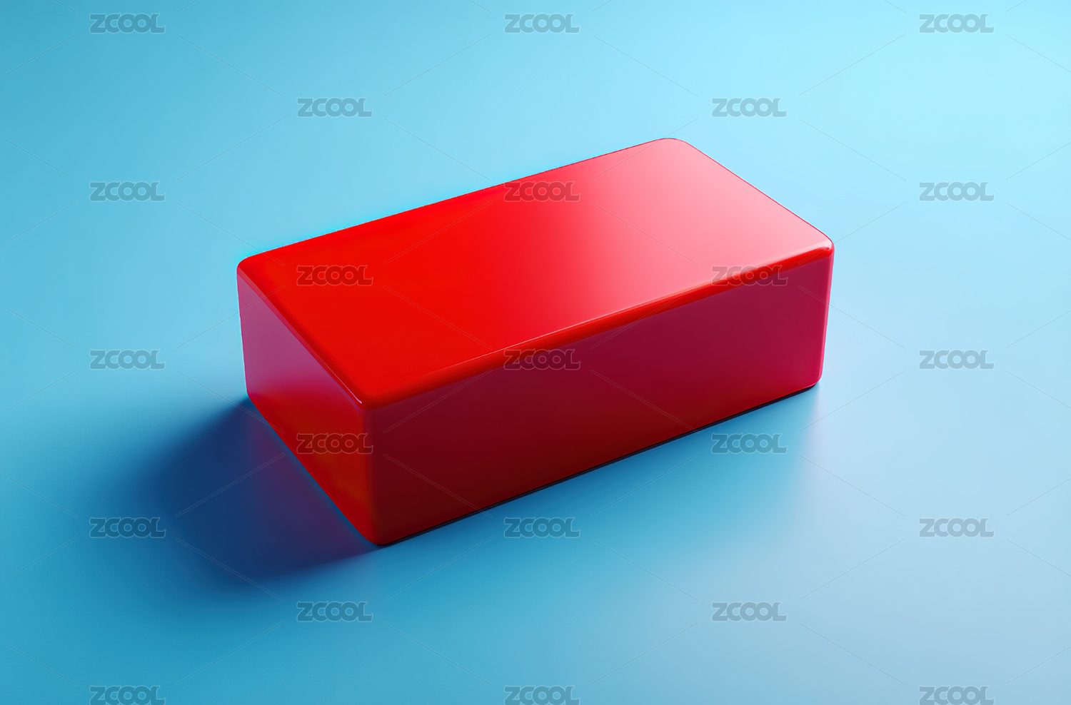红色长方体在蓝色背景上的静物图