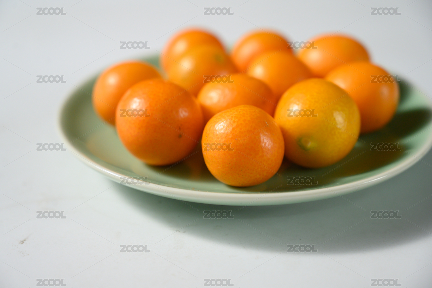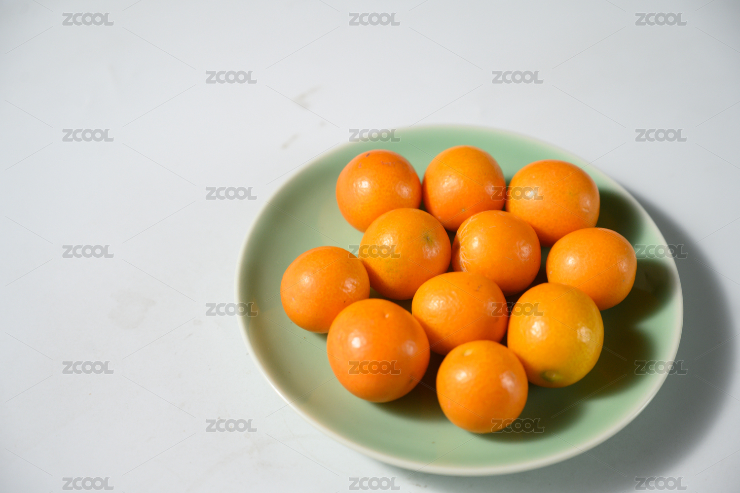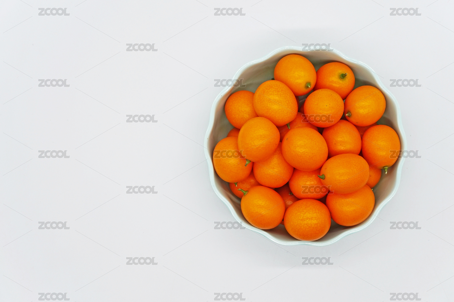 白色背景下的一盘金桔金橘脆皮桔,棚拍水果