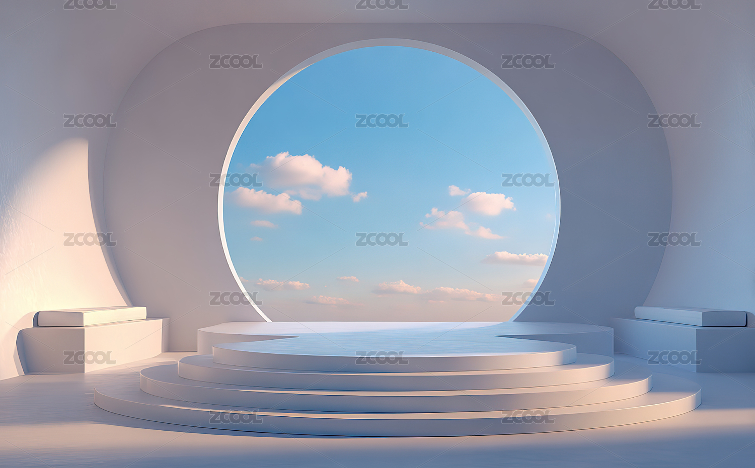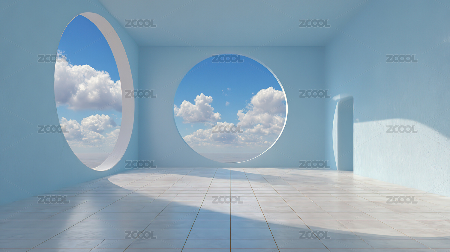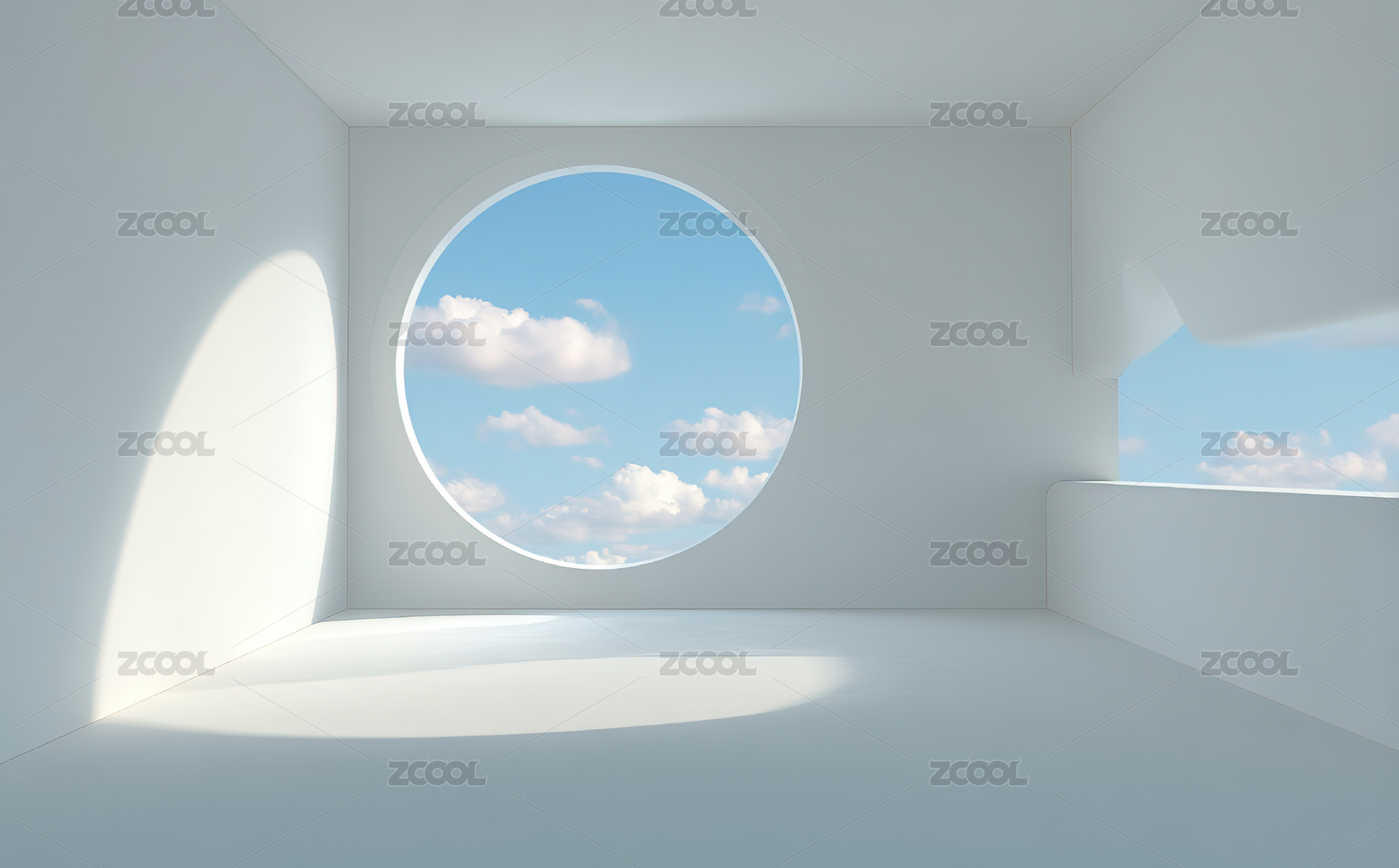 圆形窗景的白色空间