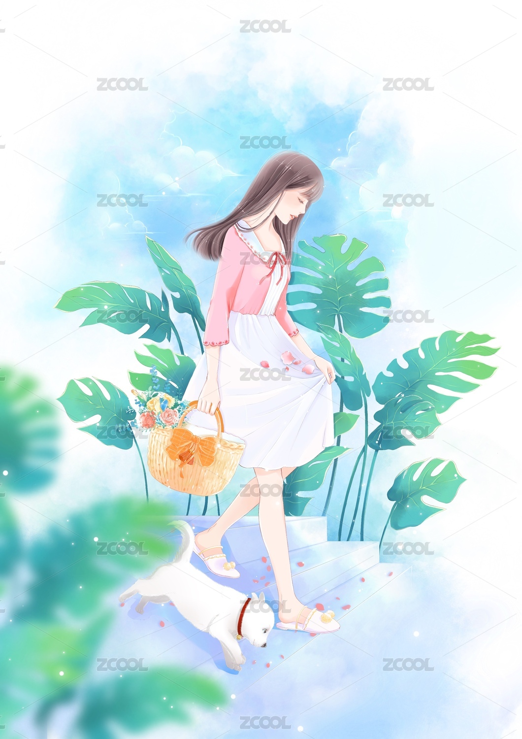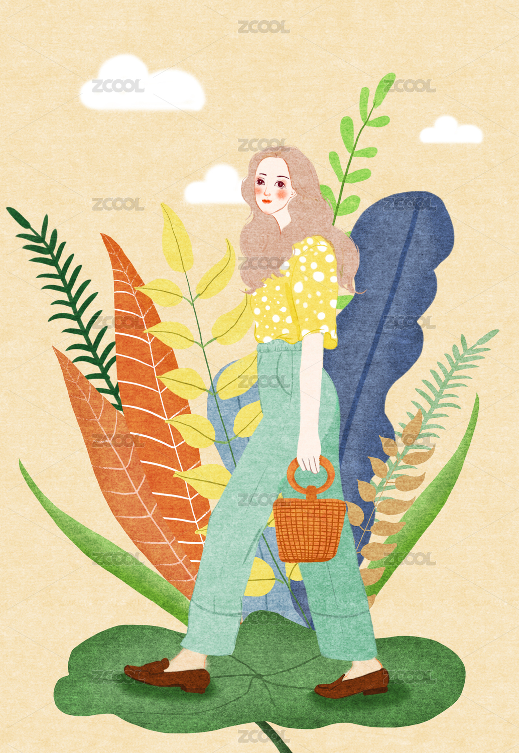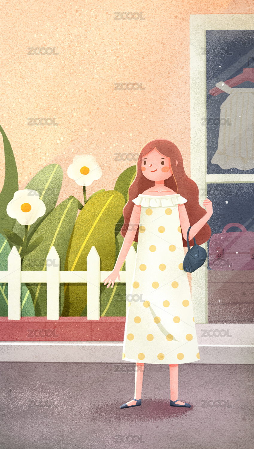 红砖围墙花树下可爱甜美青春清新秀气戴帽女