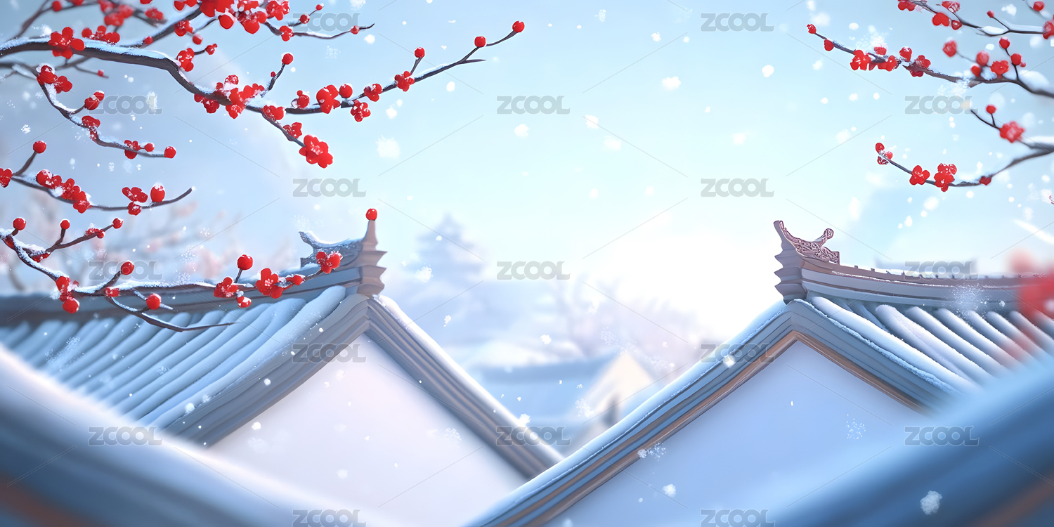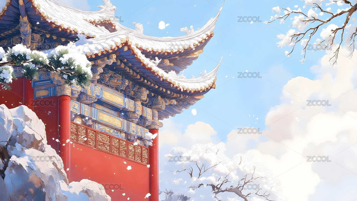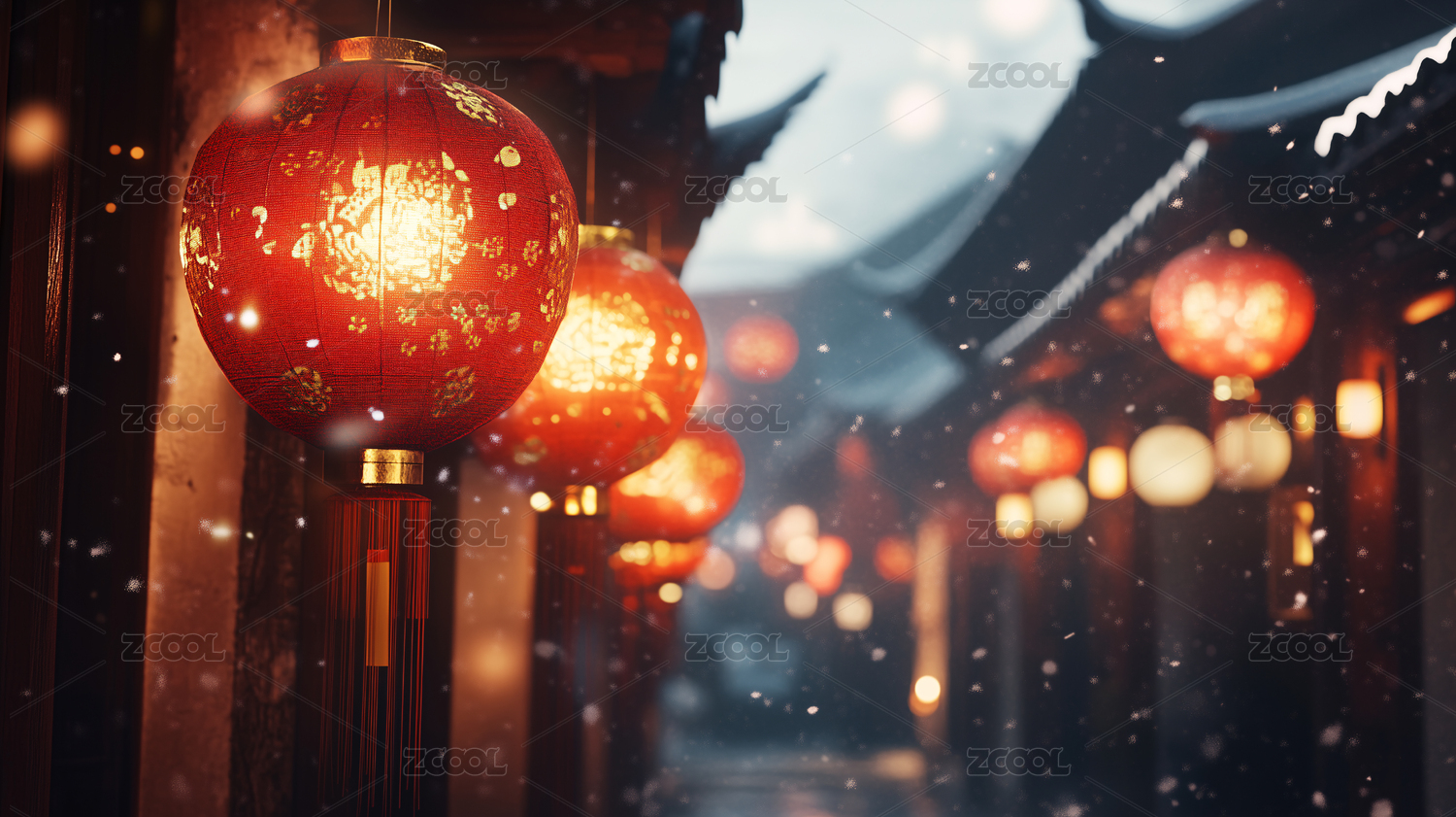建筑,雪景,雪花,古风,灯光,楼阁,屋檐,瓦片
