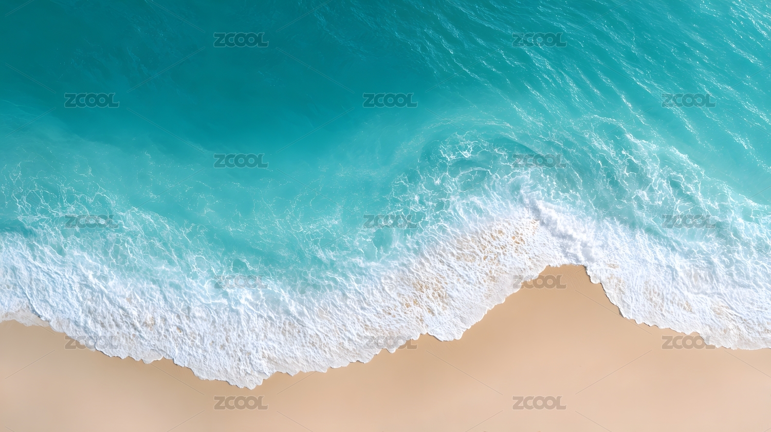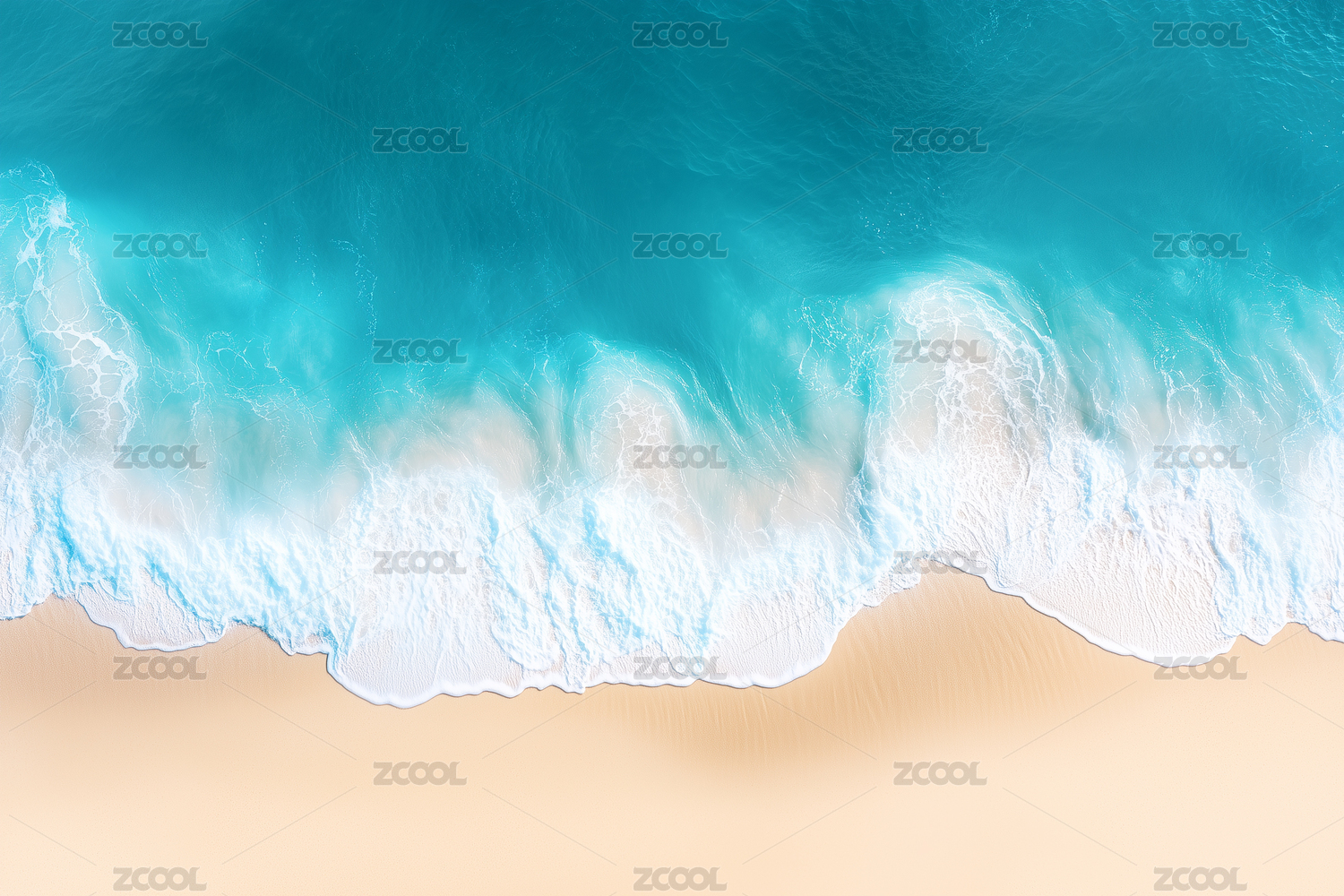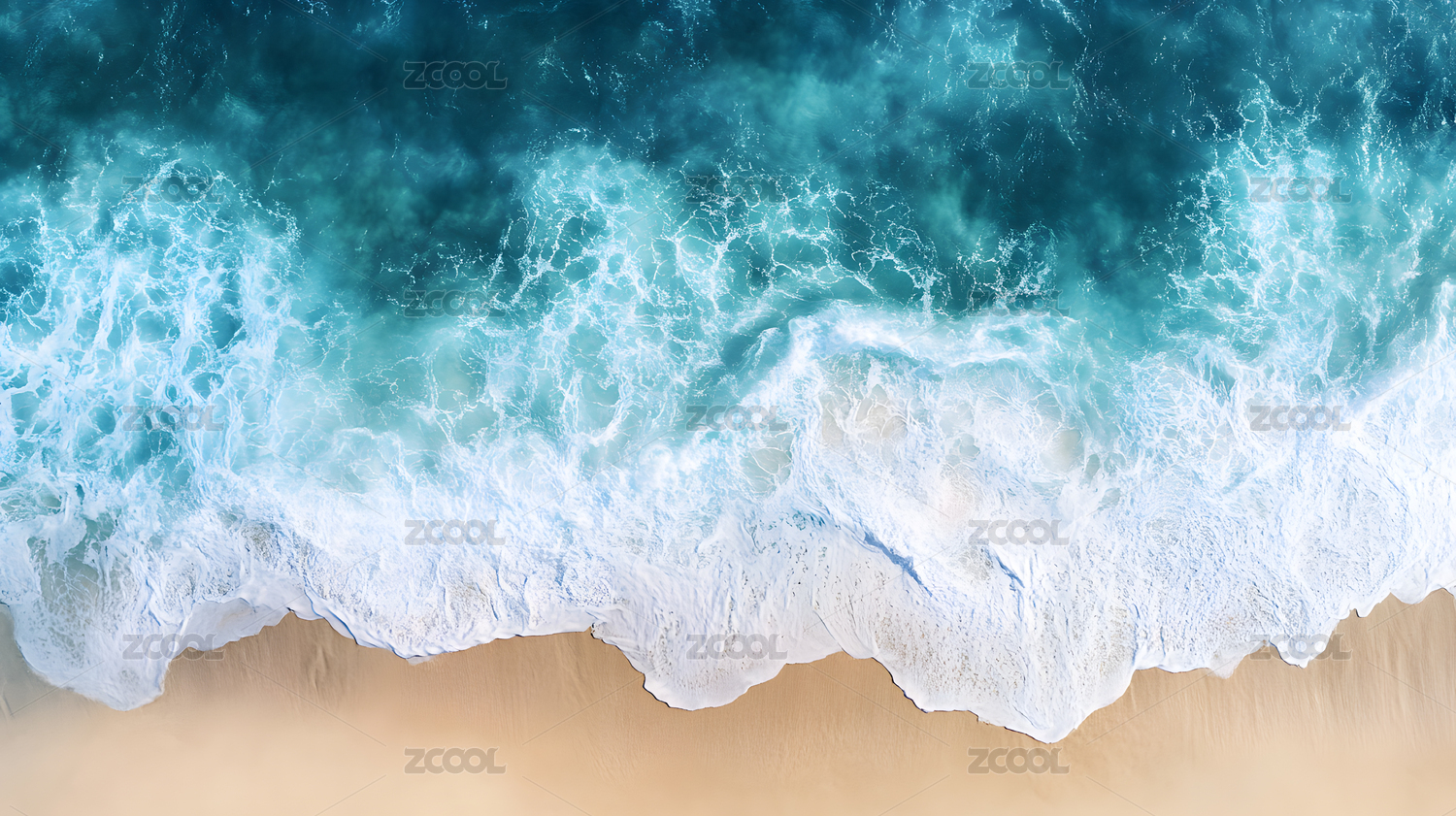 黄色沙滩与蓝色海洋海浪航拍视角背景