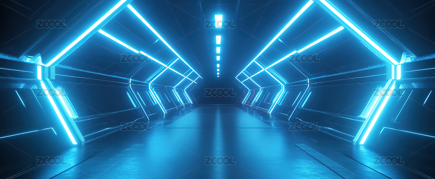 3D渲染科幻延伸蓝色未来科技感空间场景
