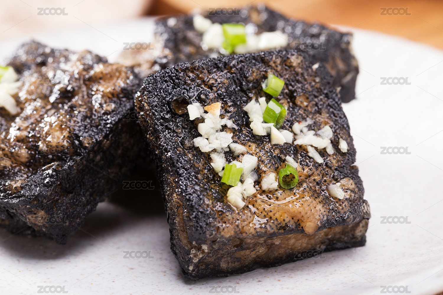 木桌背景一盘长沙特色小吃臭豆腐