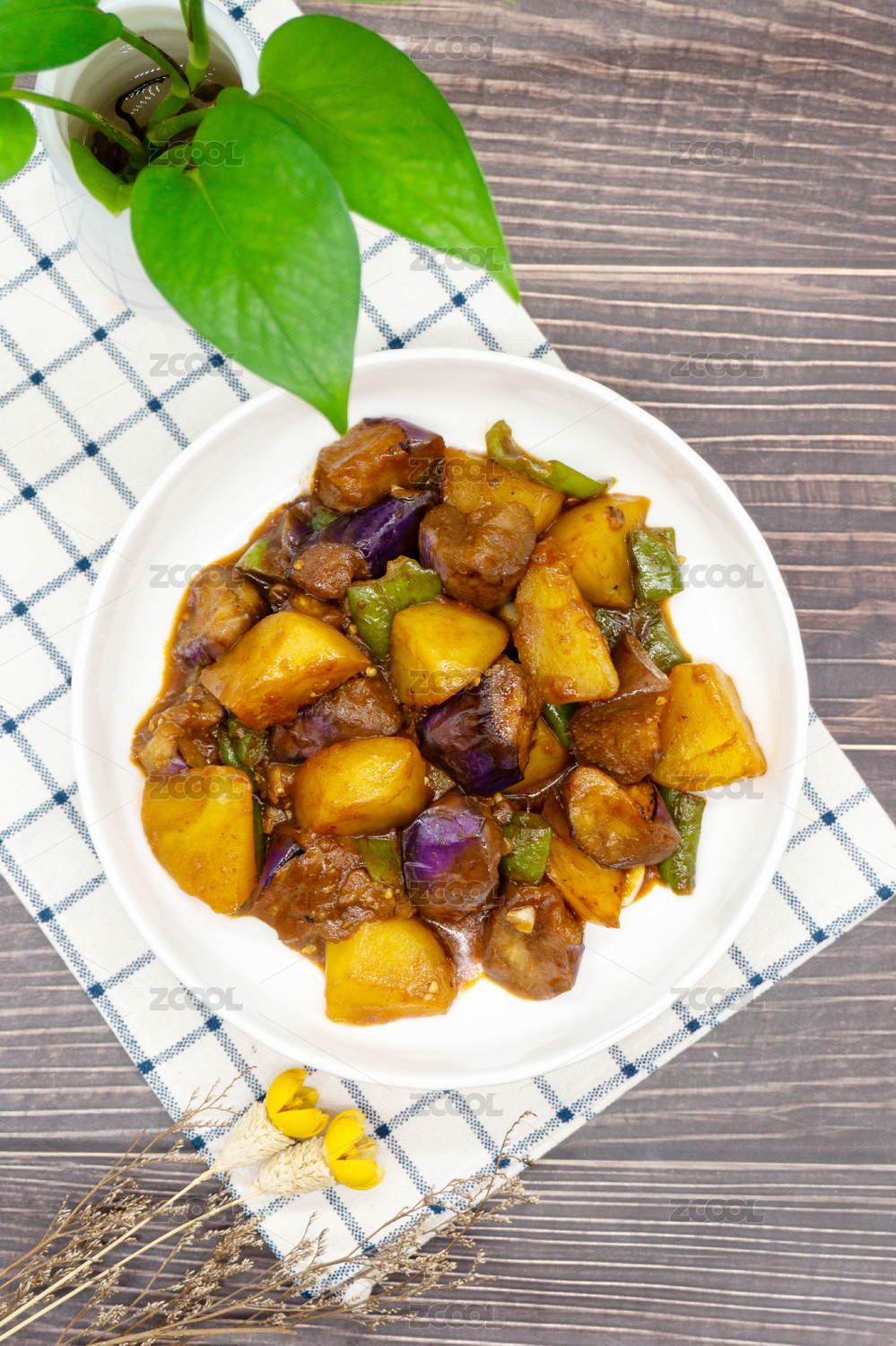 地三鲜,茄子,土豆,辣椒,东北,盘子,爆三样,炒茄子,炒三鲜,炒三样