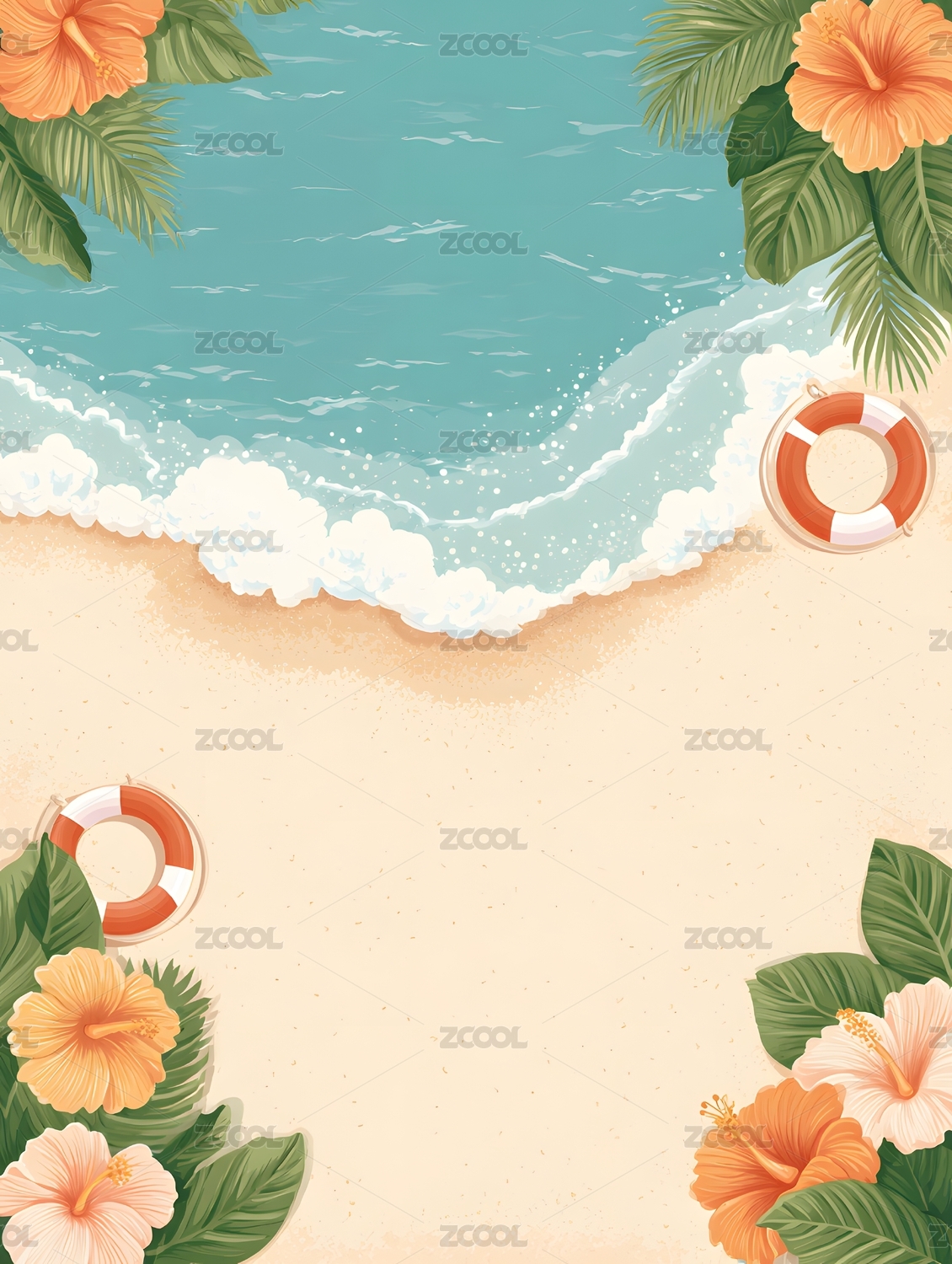 夏日海滩椰树冲浪板与冰淇淋的欢乐场景