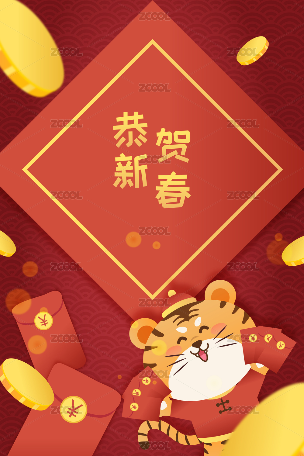 2022年虎年新年春节贺岁插画