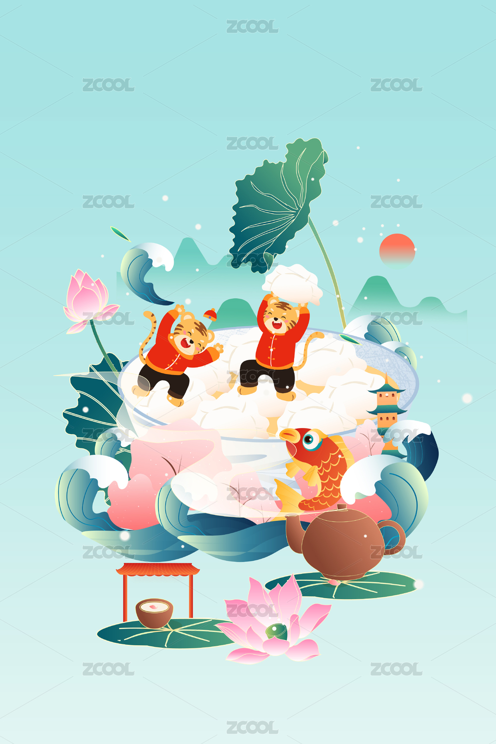 冬至饺子国风矢量插画