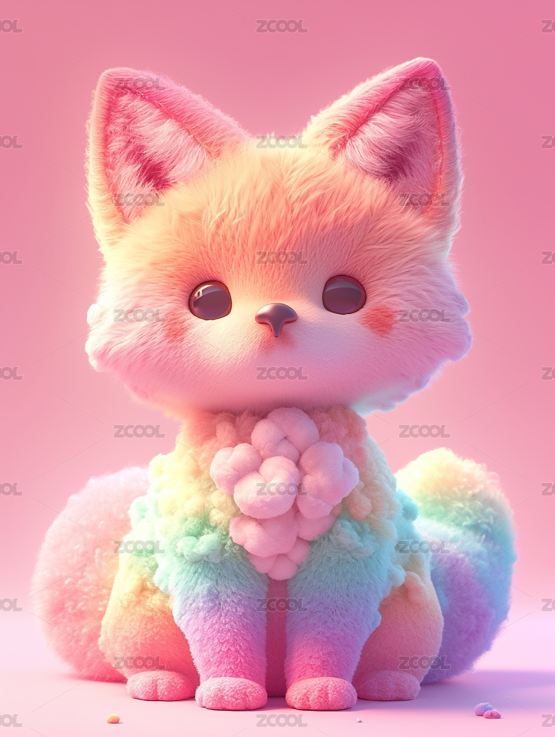 3D建模羊毛毡毛绒绒质感九尾妖狐模型